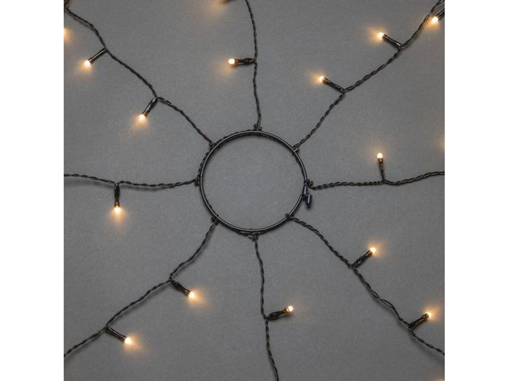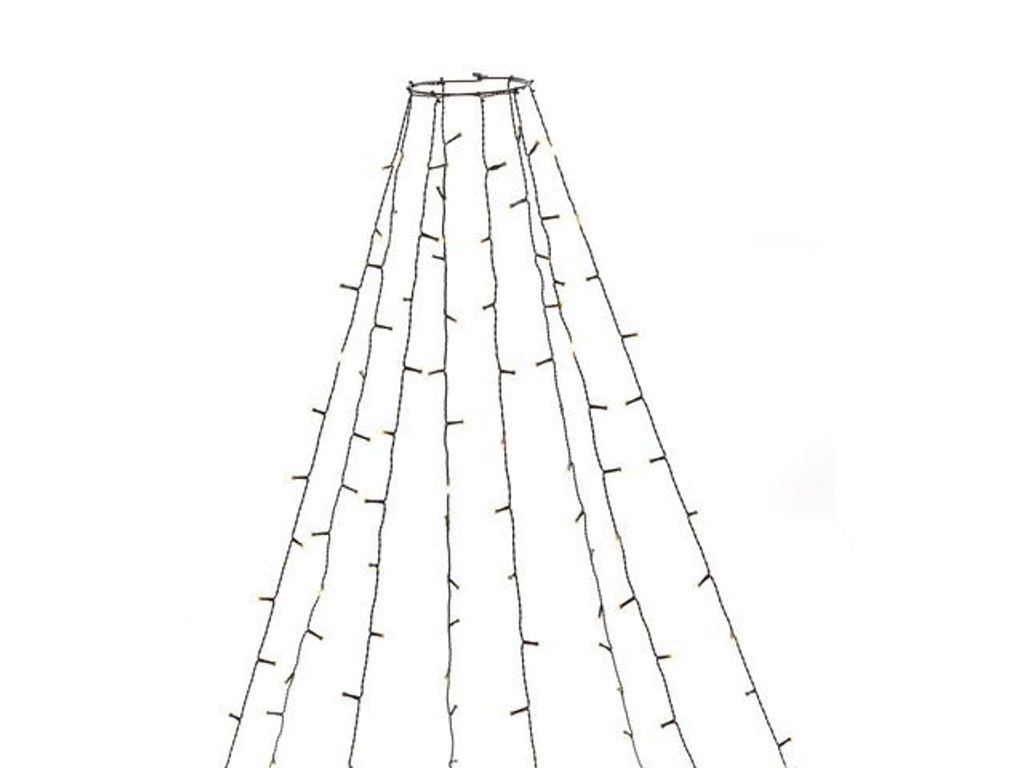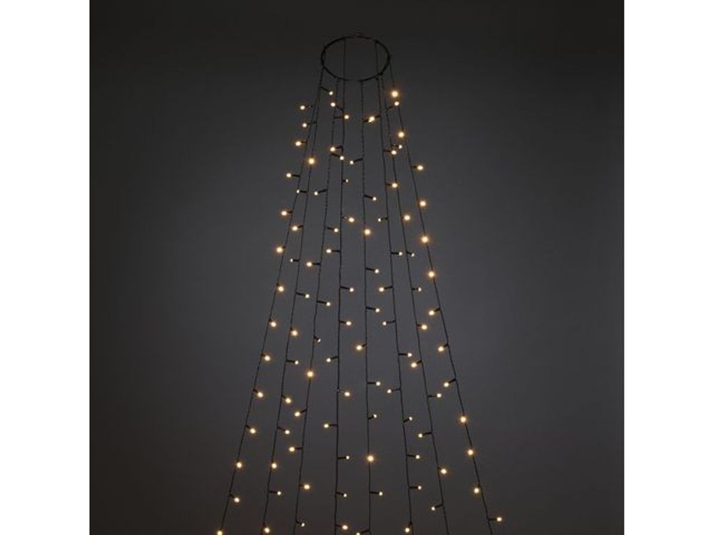 Julgransslinga med 8x30 frostad amber LED. Träs över grantoppen och fördelar lamporna jämnt. Kabeln är svart och 240 cm hög med 500 cm anslutningskabel. Drivs med en 24V transformator med inbyggd timer på 8 timmar. Godkänd för utomhusbruk. - Färg: Svart - Ljusfärg: Amber - Längd på anslutningssladd: 500cm - Antal lampor: 240 (8 x 30) - Anslutningskabelns längd: 500cm - Ljusslingans längd: 8x240cm - Transformator ingår - IP44/24V - För utomhusbruk