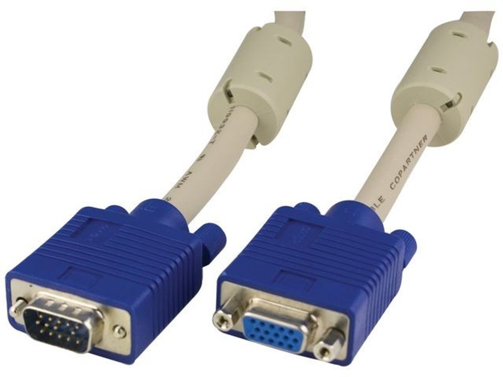 Förlängningskabel RGB HD15ha-ho 2 m, utan pin9, grå. Vanlig förlängningskabel för monitorer och för anslutning mellan switchboxar, VGA-förlängare, datorer och andra enheter. Hane till Hona med skruvkontakter. Ferritkärnor och dubbelskärmad kabel. Saknar anslutning på Pin 9. Vissa nyare monitorer måste ha en kabel som saknar anslutning på Pin 9.