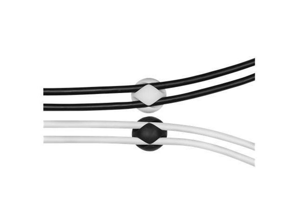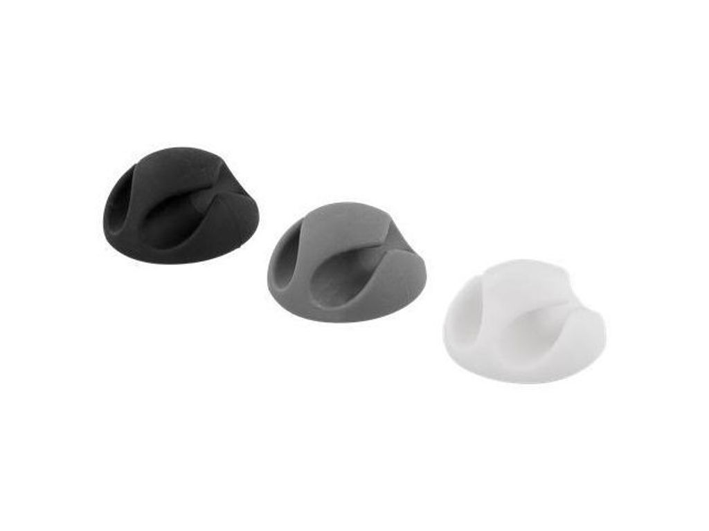 Självhäftande kabelhållare i gummi för att hålla ordning på dina kablar. Du klistrar enkelt fast hållaren på önskad plats och sätter sedan dit kabeln. - Innerdiamater 8mm - Mått(BxDxH): 29x15x29mm - Antal: 6 - Färg: svart/vit/grå