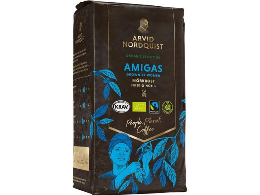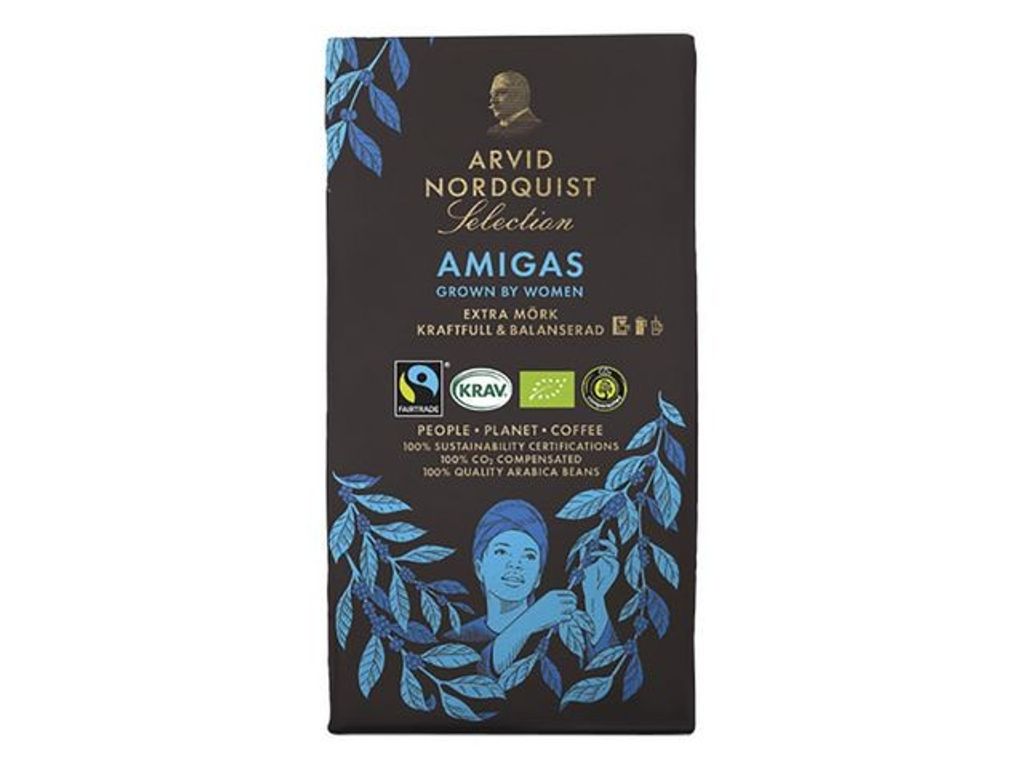 En viktig del i kampen mot fattigdom är att i högre grad involvera kvinnor i ekonomin och på arbetsmarknaden. Amigas görs av bönor från kaffeodlingar som drivs av kvinnor. Genom att långsiktigt stödja dessa kvinnliga odlare bidrar Arvid Nordquist till bättre levnadsförhållanden. Extra mörkrost - Kraftfull & Balanserad. Amigas är ett extra mörkrostat kaffe med en balanserad fyllighet med toner av citrus och choklad. Kaffet består till 100% av finaste ekologiska Arabicabönorna. Fairtrade-certifierat, 100% klimatkompenserat och rostat fossilfritt. BRYGGTYPER: - Brygg - Presso - Perkulator