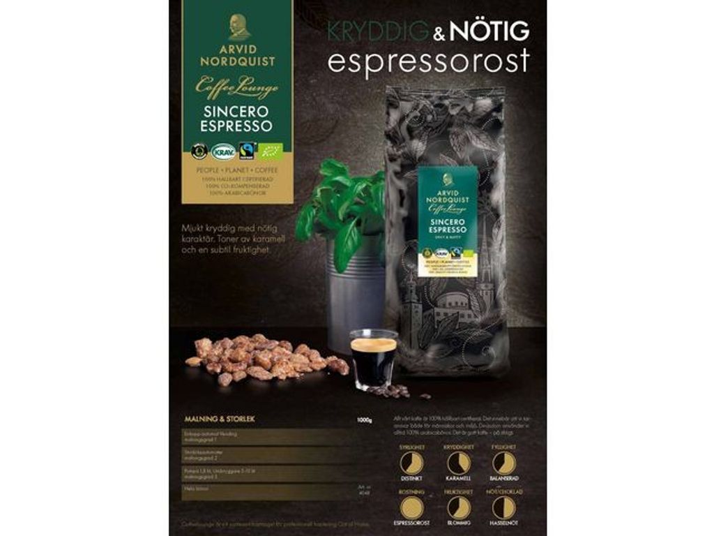Beskrivning av Kaffe ARVID.N EspressoSincer Bönor 1kg