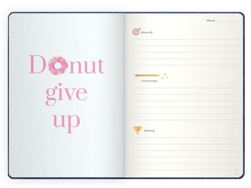 Inbunden odaterad kalender med två märkband. Omslag i blått konstläder och silverprägling. Ett planeringsverktyg för att uppnå sina drömmar och mål. Kalendern innehåller sidor med plats för mål, reflektioner, moodboards, checklistor, bucket lists, födelsedagar och anteckningar. Kalendern är uppbyggd för olika mål: årsmål, halvårsmål, samt delmål månads- och veckovis. Skriv ner månadens prestationer, utmaningar och förbättringar. Kalendern innehåller även prickade sidor för att locka fram användarens mest kreativa sidor. 100 g cremefärgat papper, 128 blad (256 sidor). FSC®-papper. Format: 165x233 mm.