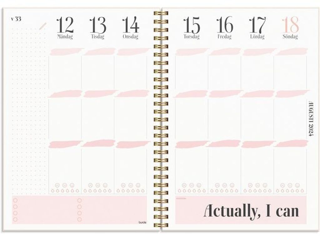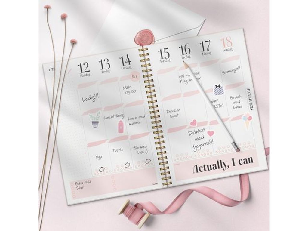 Med en bra planering kan du ta dina ideér ett steg närmare verkligheten. Life Planner Pink är en härlig kalender där du skapar förutsättningar för att frigöra tid till det du tycker är viktigt. Förutom vecko- och månadsplanering och to do-listor innehåller kalendern även verktyg där du loggar ditt mående. Låt Life Planner Pink bli en del av din vardag och känn stressen minska när du har allt samlat på ett och samma ställe! - Format: A5. - Layout: Stående. Vecka/Uppslag. - Kalendarium: 2024-06-10 - 2025-06-29. - Omslag: Kartong med struktur. Spiralbunden. - Detaljer: Gummiband. Flyttbara markörer. Pappersficka. - Innehåll: Årsplan. - Antal sidor: 160. - Miljöinformation: FSC®.