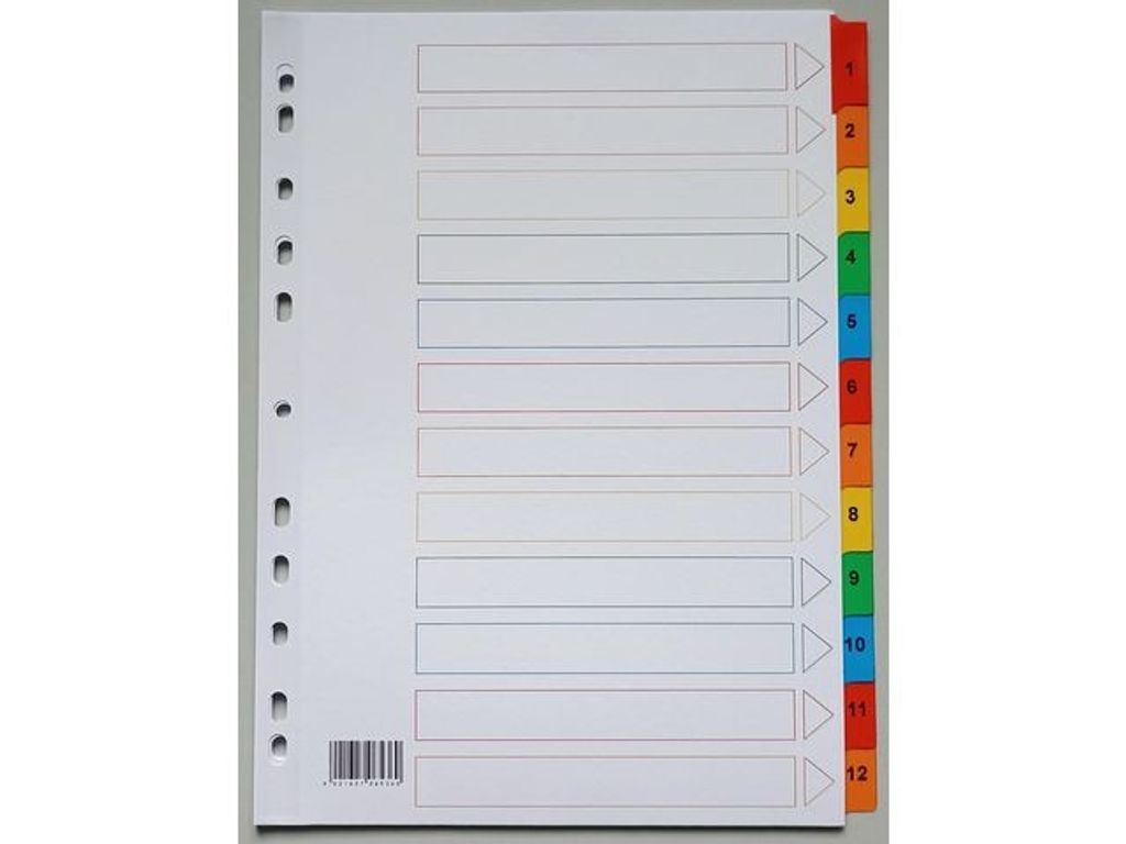 Kartongregister PLASTOREG A4 170g 1-12