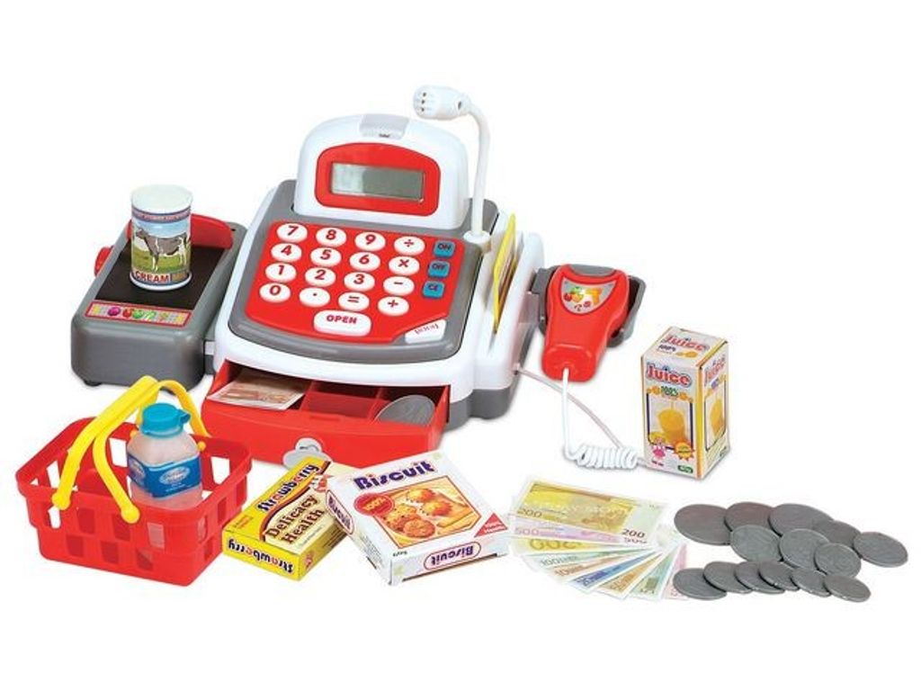 Nu kan även de minsta ta sin plats i kassan. Med denna kassaapparat går det snabbt och smidig. Nu kan leken bli ännu mera verklighetstrogen och med din alldeles egen kassamaskin. Leksaken innehåller allt du behöver för att bli den allra bästa kassaexpediten i lekrummet. Naturligtvis är kassamaskinen utrustad med en scanner med ljud. Leksakspengar, inköpskorg, varuband och varor medföljer. - Rekommenderad ålder: 3+ - Medföljer varor, pengar, fungerande mikrofon, rullband och scanner Varning. Lämpar sig inte för barn under 3 år