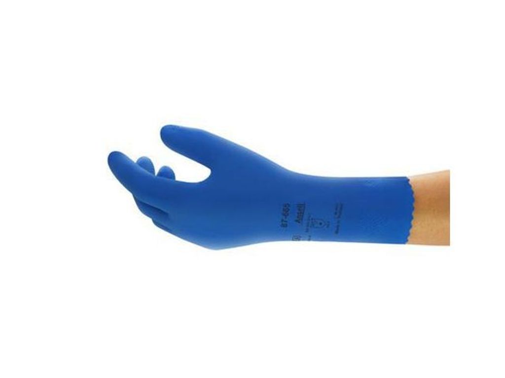 Handske ANSELL 87-665 är en bekväm kemikaliebeständig handske som därför gör den idealisk till rengöring och hantering av kemikalier. Denna handske av 100% naturgummi ger utmärkt fingerkänsla och överlägsen draghållfasthet. Handsken är mjuk och dess 100% rena bomullsvelourisering är bekväm och irriterar inte. Specialbehandlad för att minska risken för allergiska reaktioner. Rekommenderas för användning vid bl a kemiska processer och beredningar, fastighetsskötsel, lätta monteringsuppgifter och underhåll av anläggningar och maskiner. - CE-certifierad - Godkänd enligt: EN 374: 2003, EN 374-1: 2016, EN388: X010 (2003) - 1010 (2016), EN 421, EN 420:2003 + A1:2009:Kategori III - Klassificering: Kategori III - Material: Latex - Pudrade: Ja - Tjocklek: 0,4 mm - Längd: 30,5 cm - AQL 0,65 - Färg: Blå - Storlek: S7