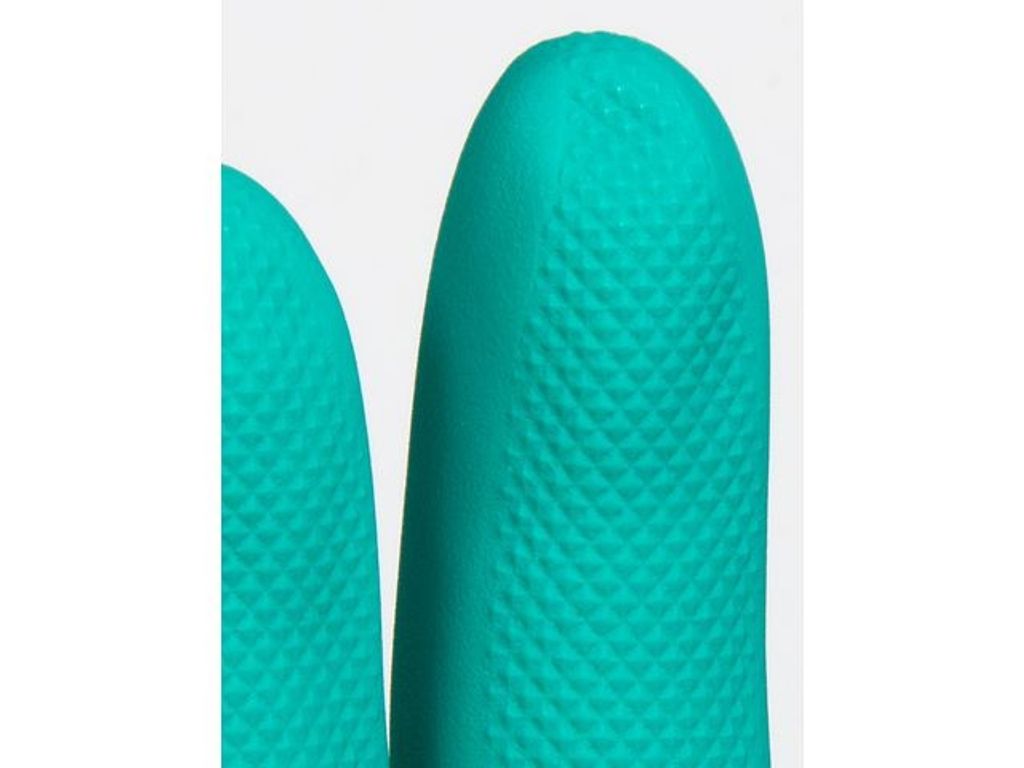 Nitrilhandske med bra grepp, för allroundarbeten. En mångsidig klassisk nitrilhandske 0,38, användbar för allt från hushåll till kemisk industri. Oflockad och bra grepp tack vare upphöjt diamantmönster. Ger ett bra skydd mot kemikalier och är godkänd för mathantering. Ftalatfri, latexfri samt olje- och fettresistent. Exempel på användningsområden kan vara jordbruksarbeten, kemtekniska arbeten, kemiska arbeten, lokalvård, livsmedelshantering, laboratoriearbeten, lackeringsarbeten, måleriarbeten, pappersindustriarbeten och plattsättningsarbeten. - Överennsstämmer med: EN ISO 374-1:2016/A1:2018 Type A AJKLOT, EN ISO 374-5:2016 - Vattentät - Tjocklek: 0,38mm - Flossad - Diamant greppmönster