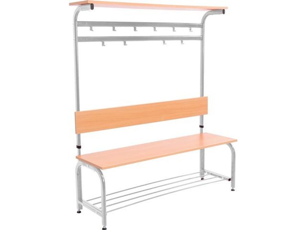 Kapp- och skolhylla golvmodell i silvrig metall. Justerbar höjd 141-179cm Sitthöjd 40cm Bredd 35 cm Längd 121 cm