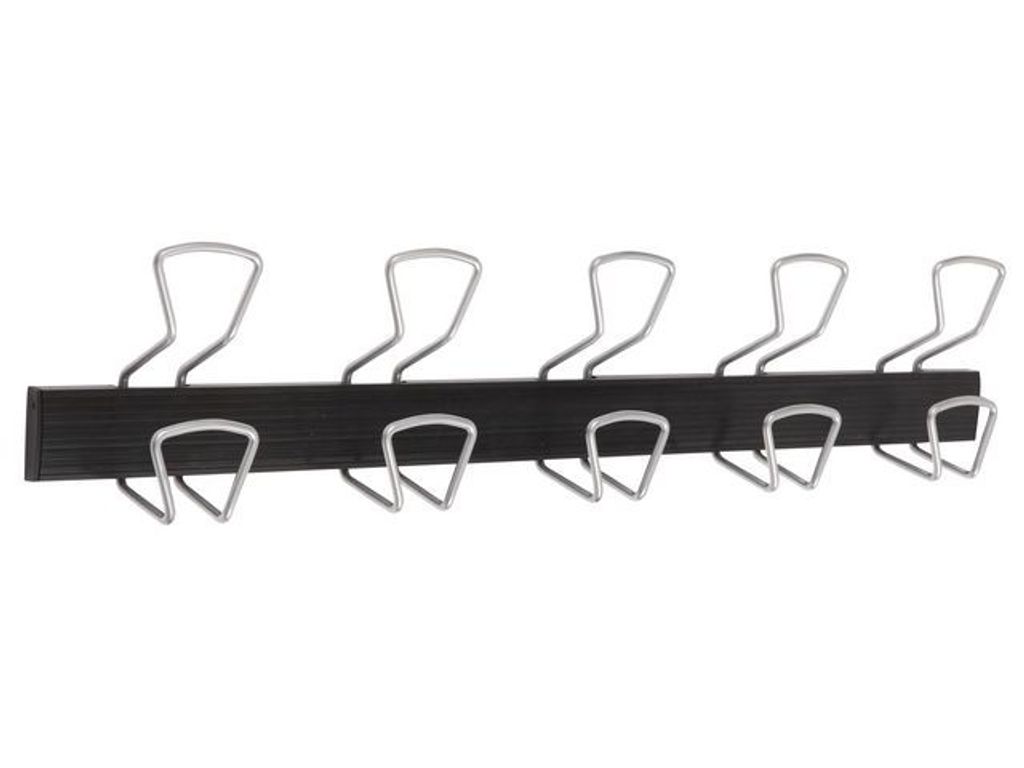 Klädhängare från Alba som hjälper dig att organisera snyggt och smart Svart klädhängare i plast med knoppar i metall. Varje krok kan bära upp till 20 kg. Skruvar medföljer. - Mått: HxBxD 16,4 x 76 x 7,5 cm