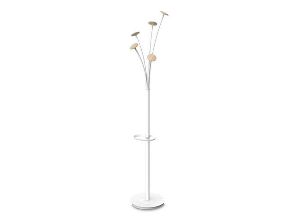 Få ordning och reda med denna snygga klädhängare! En snygg och robust klädhängare med fem krokar som kan justeras i olika positioner. Integrerat paraplyställ med plats för sex stycken paraplyer där bottnen kan tas bort för tömning av vatten. Klädhängaren kan enkelt monteras ihop utan verktyg. - Färg: Vit - Mått: HxØ 187 x 35 cm - Vikt: 7,5 kg
