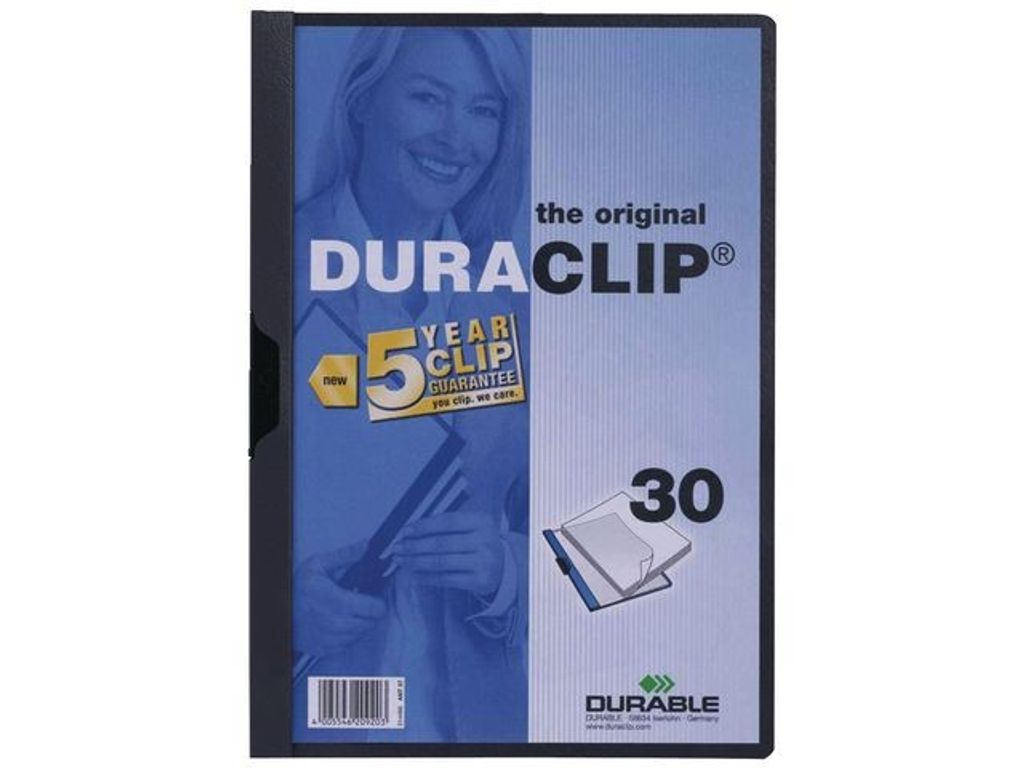Ordna presentationsmappar för konferenser eller seminarier med det här paketet med Durable Duraclip-mappar med transparenta omslag. Förvara utbildningsmaterial eller försäljningspresentationer att dela ut vid möten i den här Durable Duraclip-mappen. En robust metallklämma håller pappren på plats och öppnas enkelt för smidig åtkomst. Durable Duraclip-mappen rymmer upp till 30 pappersark och har transparent omslag så att innehållet syns tydligt. Tillverkad av PVC. - Organisera en presentation eller rapport - Stark metallklämma håller upp till 30 A4-sidor på plats - Genomskinligt omslag - Färg: Antracitgrå - Paket med 25 mappar