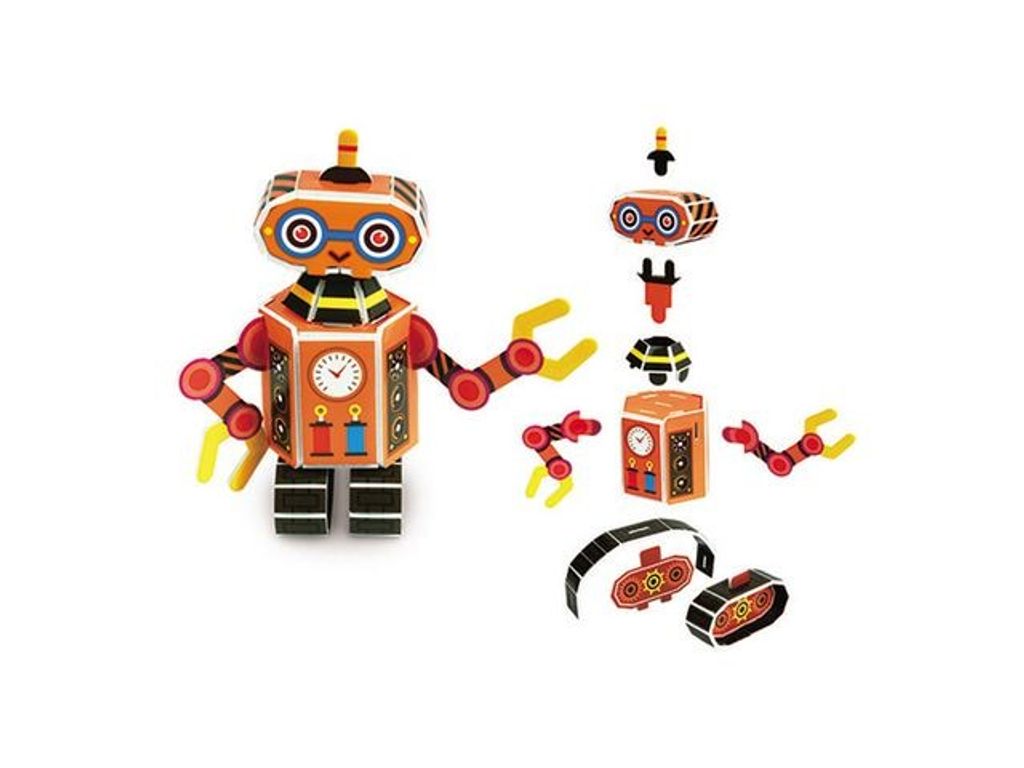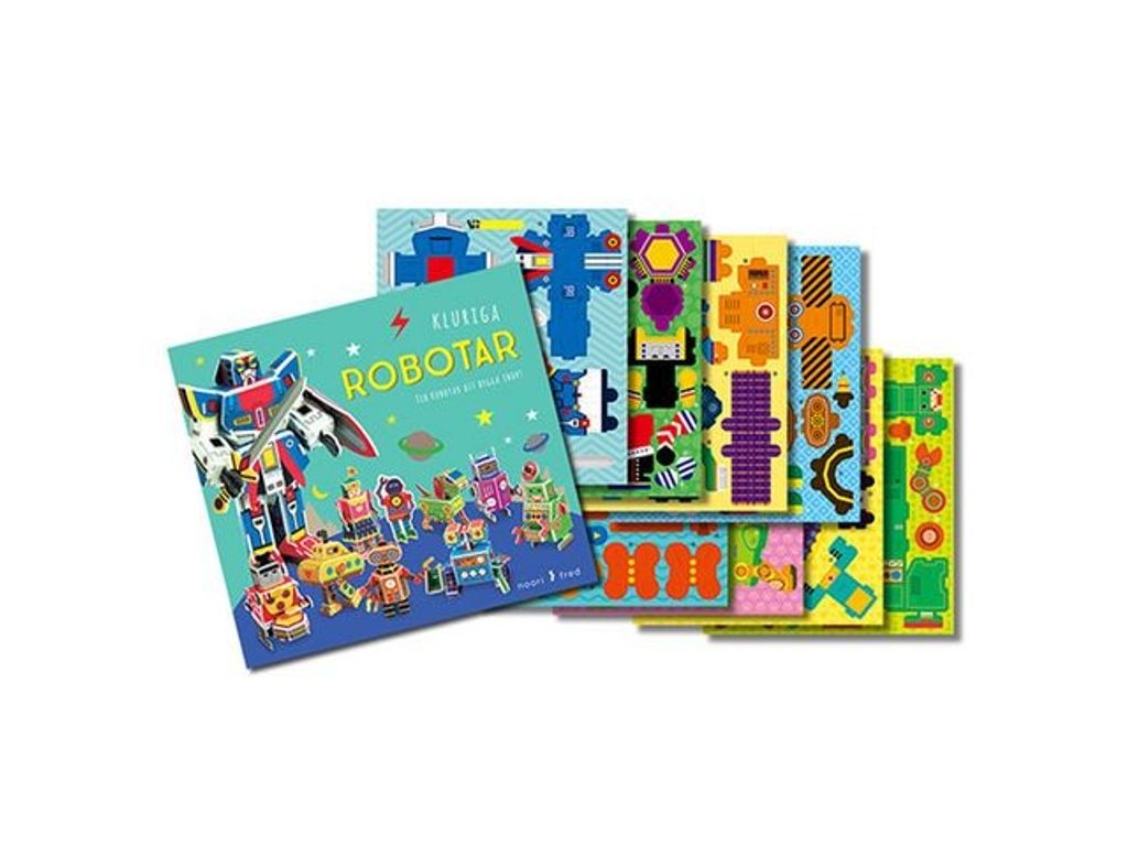 Byggsats i kartong med tio stycken kluriga robotar. Paketet innehåller ark till tio kluriga robotar i fina färger och med spännande detaljer, och kommer med en enkel instruktionsbok. Alla robotar har olika specialområden - en gillar att uppfinna, en annan att städa och en älskar musik. Byggsatserna är i kvalitativ och stabil kartong, både tåliga att leka med och fina att samla på, och perfekta som presenter eller följeslagare under resor. - Rekommenderas från 5 år - 10 st robotar - Material: Kartong