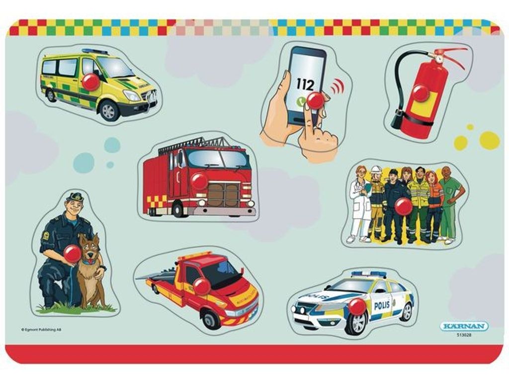 Pussel utvecklar barnens koordination och problemlösning Pusslet visar 8 olika bilder med SOS-koppling. Tack vare knoppen så är bitarna lätta att greppa och flytta. Pussel utvecklar koordination, finmotorik, problemlösning och dessutom kan man med hjälp av en vuxen lära sig vad de olika funktionerna hos SOS arbetar med. - 8 bitar med SOS-kopplingar - Greppbar knopp på varje bit - Antal bitar: 8 stycken