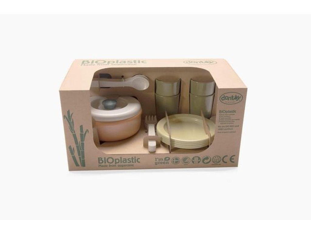 Detta matset inbjuder till lek och lärande och är perfekt för både inomhus- och utomhusbruk. Komplett matset med kruka och servis för 4 personer i vackra färger från Dantoy, tillverkat av Svanenmärkt bioplast. Setet innehåller 22 delar och är producerade av sockerrör. Det innebär att det är gjort av en 100% hållbar råvara och också 100% återvinningsbar. Kan användas från 2 år och tål maskindisk. - Ursprungsland: Danmark - Material: Bioplast, sockerrör - Kan diskas i diskmaskin - Antal: 22 delar - Certifikat: Svanen, licensnummer 5095 0001 2.29