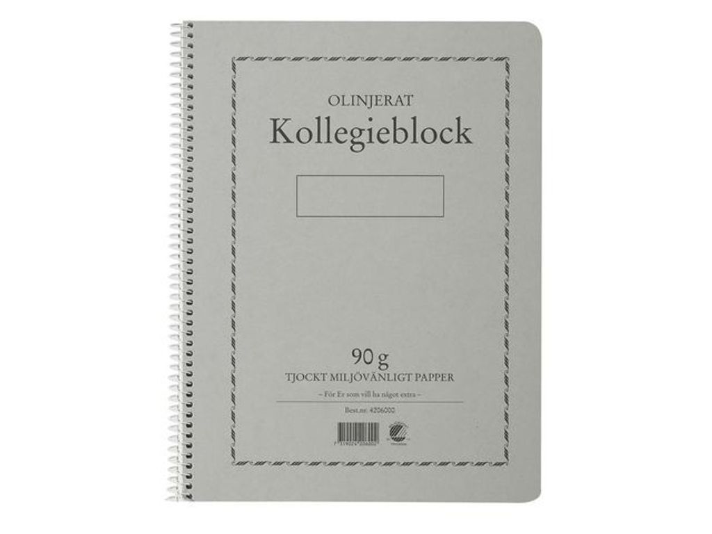 Beskrivning av Kollegieblock A4 90g 70bl olinj TF Olinjerat sprialbundet kollegieblock med 70 blad träfritt papper. Träfritt papper. Spiralbundna, microperforerade och hålade. 70 blad, 90 g. A4, olinjerat. - Hålning: Ja - Svanen Licensnummer: 30410112