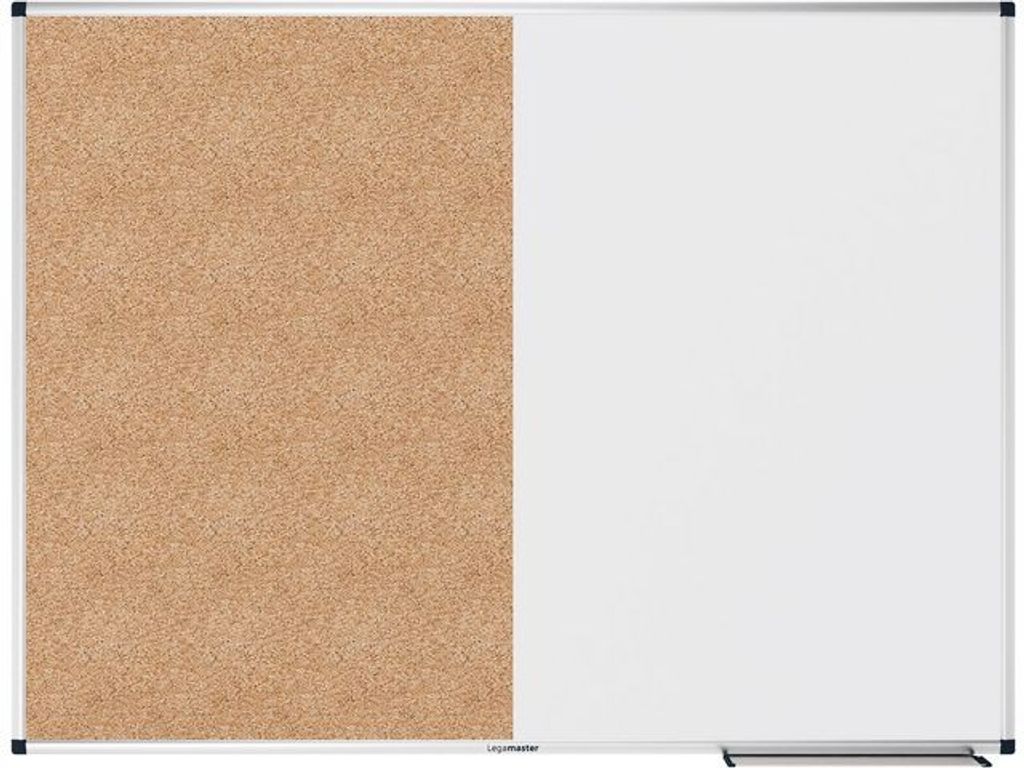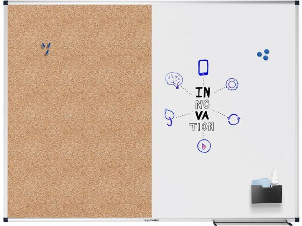 Funktionell whiteboard och anslagstavla för tillfällig användning på kontoret eller hemmakontoret. En halva: Magnetisk lackerad ståltavla som lämpar sig för att skriva med whiteboard pennor med torr radering. En halva: anslagstavla med naturlig korkskiva. Legamaster erbjuder ett brett utbud av tillbehör: Vi rekommenderar det 27-delar STARTER tillbehörsset för whiteboardtavlor och torr raderade whiteboardpennor. - Ram i aluminium med grå hörnlock i plast (Pantone 433C). - Kan monteras horisontellt eller vertikalt. - Pennhållare (30 cm) med ändlock - Monteringssats och monteringsanvisningar ingår.