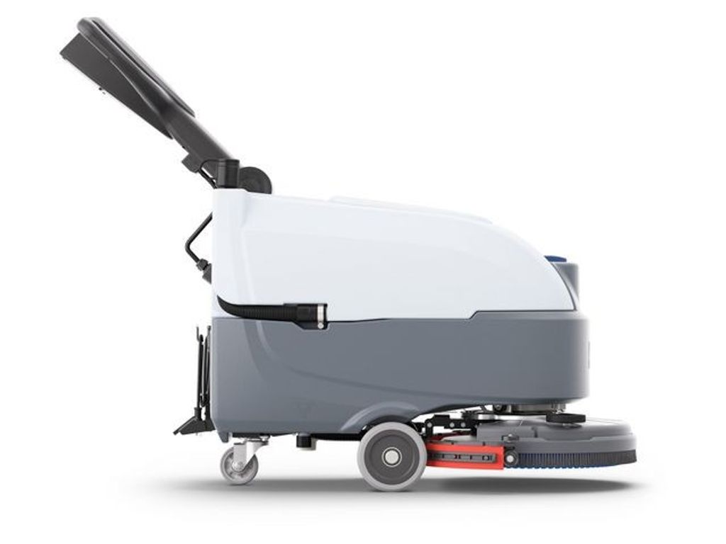 Skurmaskin för effektiv rengöring i trånga utrymmen. SC370 Gå-bakom kombiskurmaskinen erbjuder daglig, golvrengöring med enkel drift, tillförlitlig prestanda och reducerat behov av vatten och rengöringsmedel, för bättre och effektivare golvrengöring. Manöverpanel med en-knapps start och huvudreglage – enkelt åtkomlig för operatören Tyst läge för icke störande rengöring under dagtid i trafikerade offentliga utrymmen eller ljudkänsliga områden. Lås gummiskrapan i uppfällt läge för dubbel skurning och för effektivare rengöring av svåra fläckar och högtrafikerade område. - Ergonomiskt justerbart handtag för bästa användarupplevelse - Kan fällas ihop för smidig förvaring och transport - Skurdäcket är 43cm (17tum) - Ren-/smutsvattentank 25 liter