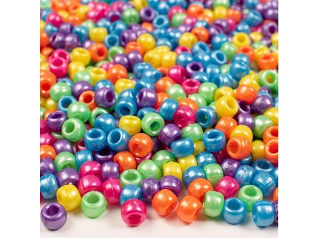 Kongopärlor i massor av härliga pärlemorfärger. Passar perfekt till att göra fina dekorationer, armband eller halsband och pärlornas stora hål gör dem lätta att trä. - Antal 1000/FP - Mått: Ø 9 mm, hål Ø 4 mm - Färger: Gul, lila, blå, rosa, grön och orange - Material: PS