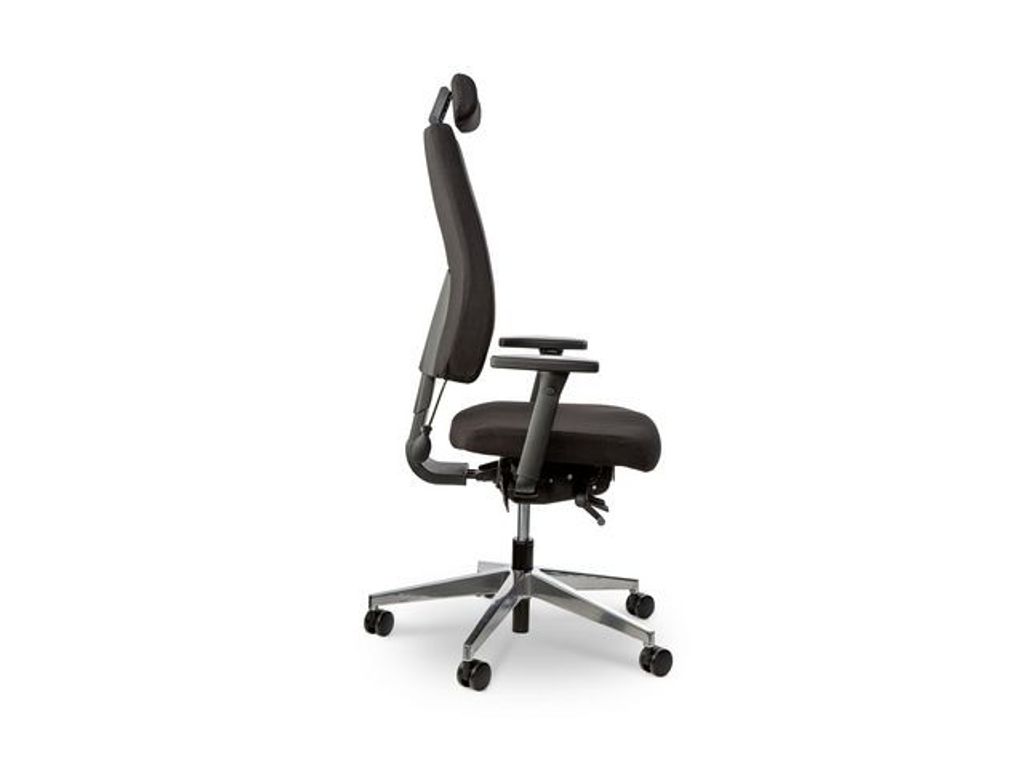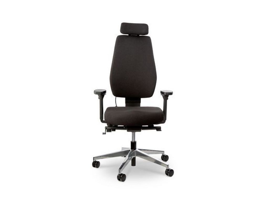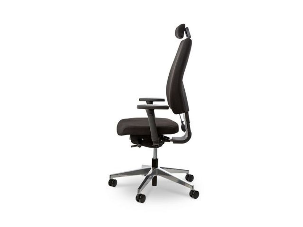 Ergonomisk Mästarstol - Högsta komfort för ditt arbetsliv. Denna mästarstol är designad för att förbättra din arbetsdag på alla sätt möjligt. Med en rad anpassningsfunktioner som låter dig skräddarsy din sittupplevelse, är detta stolen som du behöver för att arbeta och må bra samtidigt. - Sitsens anpassningsförmåga: Höjdjustering, lutningsjustering, justering av sitsdjup och svängmotstånd anpassat efter din vikt - Ryggstödets stöd: Med höjdjustering, justerbart uppblåsbart svankstöd och nackstöds höjd- och lutningsjustering, ger detta ryggstöd det stöd du behöver för rätt sittställning - Nackstödets mångsidighet: Lutningsjustering, 4D-armstöd med bredd- och höjdjustering, armstödet glider framåt och bakåt, och den övre delen vrids 360° - perfekt anpassningsförmåga för din komfort - Hållbart material: Klädsel i Gabriel Fighter, 130 000 Martindale, garanterar lång livslängd, och den eleganta svarta färgen passar in överallt - Stabil konstruktion: Krysset med en diameter på 70 cm är tillverkat av polerad aluminium och utrustat med frigående hjul för smidig förflyttning - Perfekta mått: Med en sitthöjd på 46-58 cm, sittbredd på 47 cm, sittdjup på 46 cm, ryggstödshöjd på 55 cm, nackstödets bredd på 40 cm, nackstödshöjd på 10 cm och nackstödsbredd på 24 cm, är stolen ergonomiskt utformad för att passa dina behov - Långvarig trygghet: Levereras med en generös garanti på 5 år, så att du kan känna dig säker i din investering