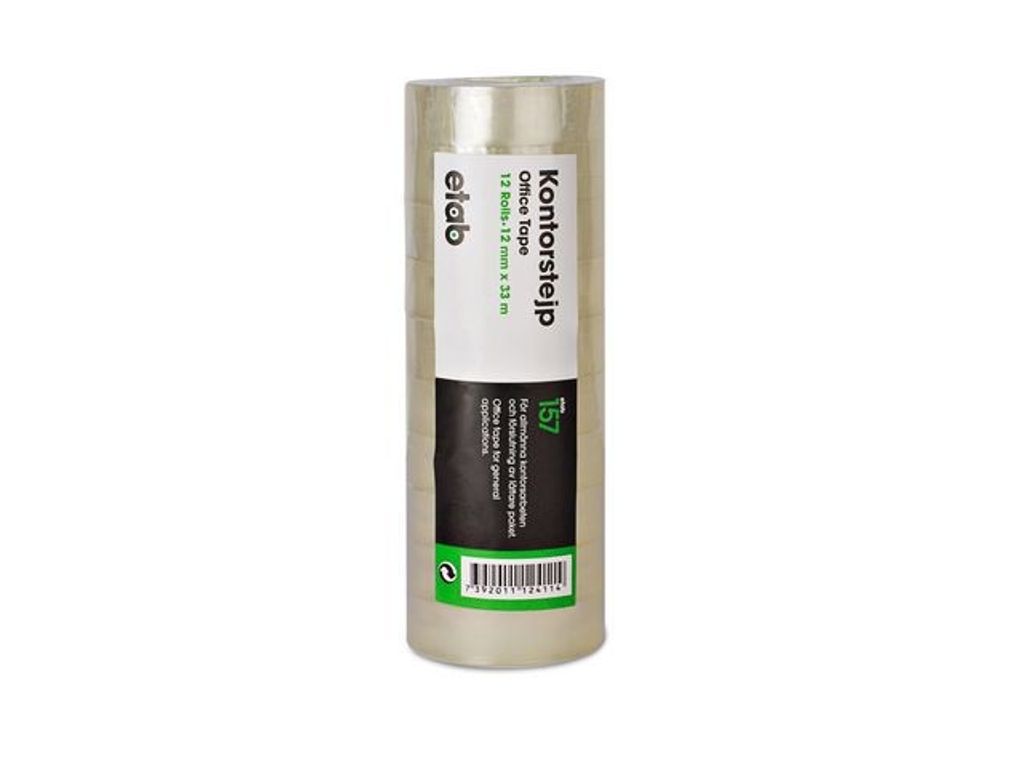 etab 157 är en klassisk kontorstejp lämplig för många ändamål i såväl kontor och butiker som i hemmet. etab 157 är en klassisk kontorstejp lämplig för många ändamål i såväl kontor och butiker som i hemmet. Passar utmärkt till allt från inslagning av presenter, för att laga eller fästa papper, till att försegla lättare paket. En genomskinlig kontorstejp som är lätt att hantera, lätt att riva av och som inte gulnar med tiden. etab 157 kontorstejp är gjord av specialbehandlad PP-film med akrylhäftämne. Levereras i tower-förpackning. - Mått: 12mmx33m
