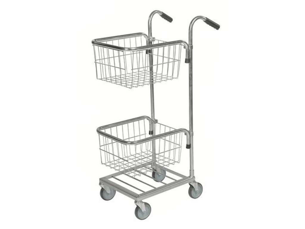 Mindre vagn för många användningsområden såsom kontor, skola och butik. Med elzinkat stativ och fyra länkhjul. De praktiska korgarna är justerbara i höjd. Levereras omonterad. - Belastning: 35kg - Mått 660x385x1090mm - Hylldimensioner: 410x355mm (LxB) - Hjultyp: 4 länk - Bromsade hjul: Nej - Vikt vagn: 12,5kg