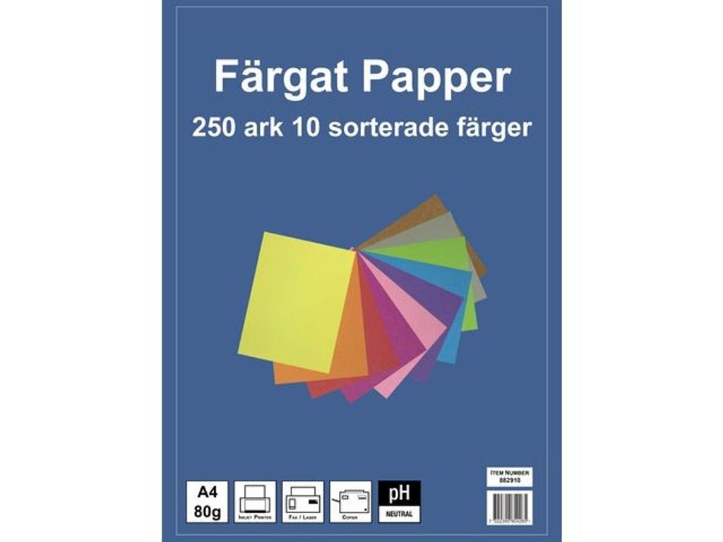 Beskrivning av Kop.ppr A4, 80g 10 färger 250/fp