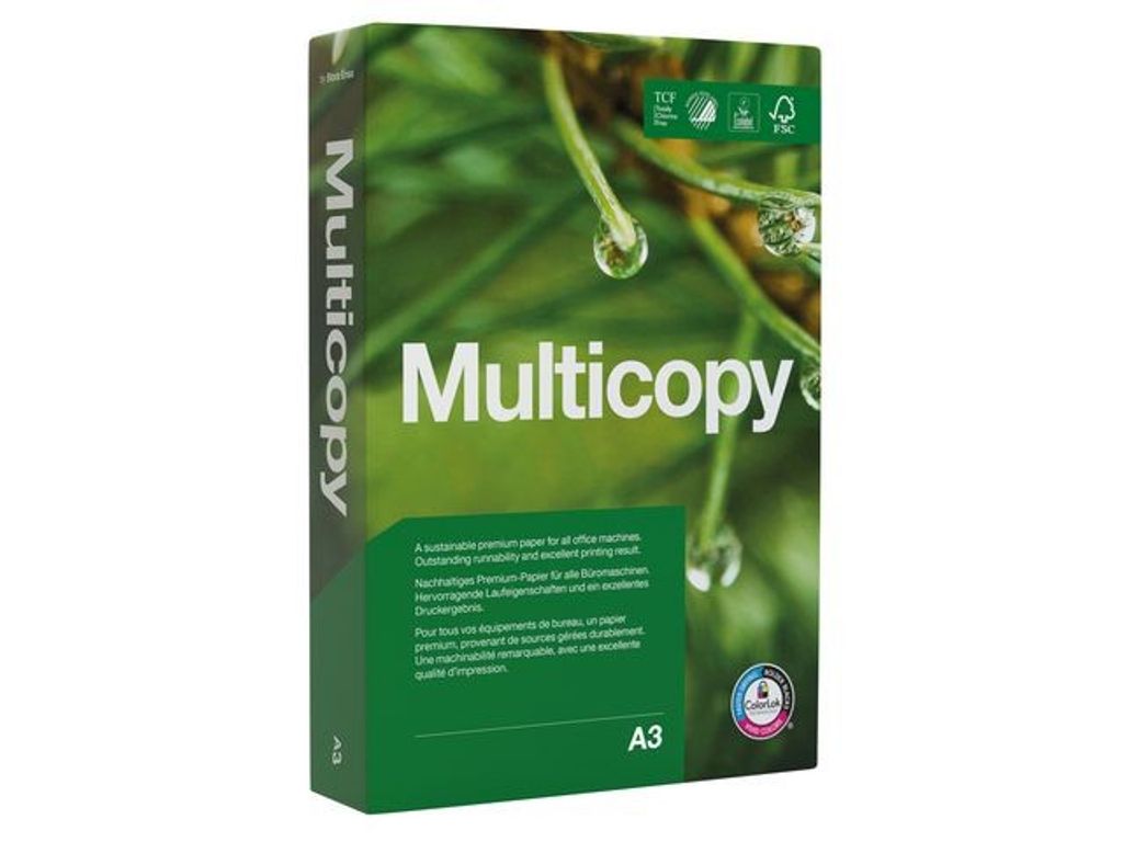Ett miljömässigt unikt multifunktionspapper med utmärkt körbarhet och tryckresultat i alla kontorsmaskiner, laser, InkJet, kopiatorer och fax, i både färg och svart/vitt. Multicopy är ett lättanvänt, hållbart premium-papper som är idealiskt för alla typer av kontorsmaskiner och perfekt för förtryckning. Varje ark dammsugs för att förhindra att damm orsakar stopp eller andra problem. Multicopy uppfyller alla krav: ett hållbart premium-papper för alla dina kontorsmaskiner och det enda kontorspappret en arbetsplats behöver. Enkelt att köpa, enkelt att använda, nöjda kunder och tillfredsställda kollegor. Multicopy har funktionen ColorLok® teknologi, vilket ger utskrifter som är skarpa, tydliga och fria från smet och suddighet. Multicopy tillverkas enligt ISO 9706-standarden för permanenta papper vilket innebär att läsbarheten och hanteringsfunktionerna inte förändras över tiden. Strålande vithet och ljushet som ger dina utskrifter perfekt kontrast. Svanenmärkt, FSC, EU-Ecolabel, PEFC, TCF (Totalt klorfri) Bruket är ISO 14001-certifierat och Emas-registrerat. Åldersbeständigt i enlighet med ISO 9706. Vithet CIE 168, ColorLok teknik för bättre färgåtergivning. - Svanen: 30440044 - FSC-certifierat - PEFC-certifierat - EU-Ecolabel: SE/011/001 - TCF (Totalt klorfri) - Åldersbeständigt i enlighet med ISO 9706 - Vithet CIE 168 - ColorLok-teknologi ger djupare svarta och mer levande färger - Obestruket - Ohålat - Enastående körbarhet - 100% återvinningsbart