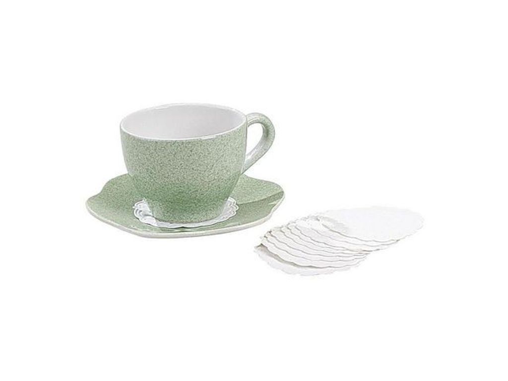 Dessa användbara och miljövänligare muggunderlägg kan användas för att skydda bordet från spill och fläckar. Muggunderläggen håller skrivbord, bord, arbetsplats och bänkar rena och torra. Dessa vita underlägg förhindrar fläckar, märken och fula vattenringar som bildas efter muggar. Med reliefkanter och fina detaljer längs kanterna är dessa underlägg är ett elegant och funktionellt tillbehör på bordet. - Placeras under dricksglas och muggar - Skydda bordet från fläckar, märken och vattenringar - Präglad - Färg: Vit - Diameter: 90 mm - Antal: 500