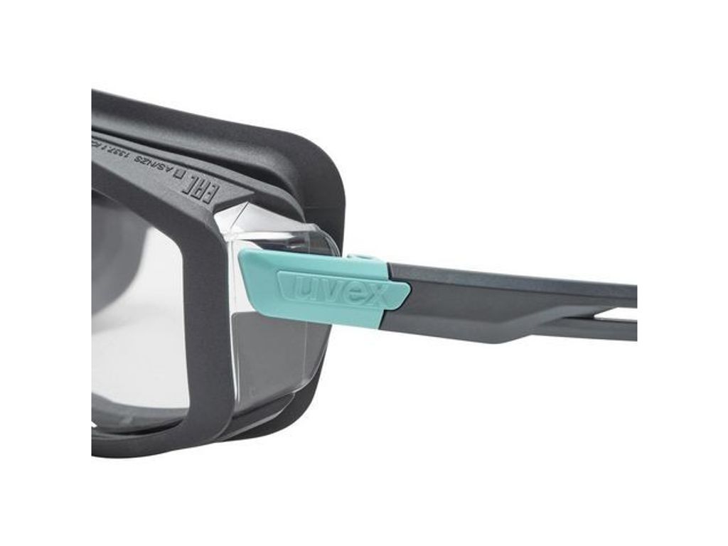 Mjuka, flexibla skyddsglasögon som anpassar sig efter bäraren för optimalt skydd och komfort. Med x-tended sidoskydd som ger extra bra skydd åt sidorna. Justerbara skalmar garanterar en bra passform på alla huvud- eller ansiktsformer. De är även ergonomiskt formade för en perfekt passform som motverkar att det uppstår obehagliga tryckpunkter. Uvex I-serien är en ny flexibel 3-i-1 skyddsglasögonlinje med rätt produkt för många arbetsplatsrisker eller miljöer och du kan enkelt kombinera de olika varianterna med varandra. Varianten Uvex I-range planet sätter nya standarder vad gäller hållbarhet. Dess innovativa skyddsglasögon tillverkas av återvunnet och biobaserat material, för att uppnå en mer miljövänlig och resurssnål produktion. - Certifierad i enlighet med EN 166 (personligt ögonskydd) och EN 170 (UV-filter) - Stor, platt linsdesign för ett obegränsat synfält - Robust polykarbonatlins med beprövad uvex supravision-beläggningsteknik: permanent anti-im och reptålig lins - Hållbart framställt genom användning av återvunnet och biobaserade material - Metallfri - Ramfärg: antracit, turkos - Linsfärg: klar