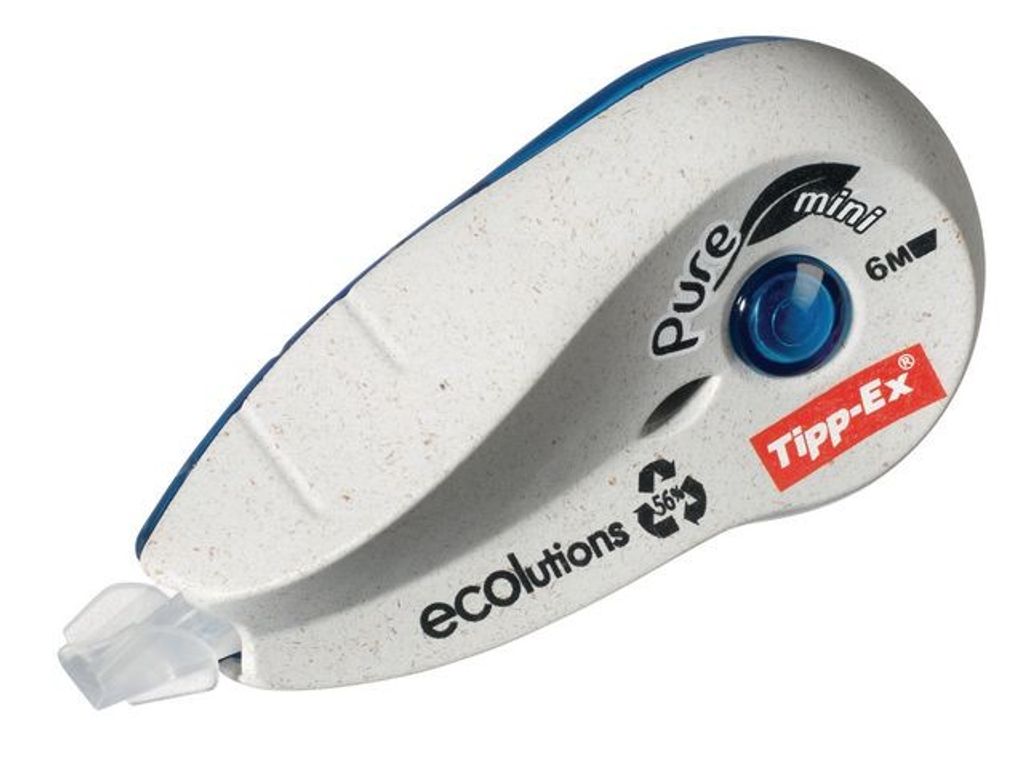 Korrigera fel snabbt och enkelt med korrigeringsrollern Tipp-Ex® Pure Mini ecolutions®, tillverkad av 74 % alternativ plast vilket minskar dess miljöpåverkan. Korrigeringstejp som ger exakt och ren korrigering och som appliceras torr för omskrivning direkt. Den är transparent och har en längdindikator så att du kan se hur mycket tejp du har kvar. Korrigeringstejpen består av en slitstark polyesterfilm och har en kompakt, stenfärgad design. Den är lukt- och PVC-fri så även barn kan använda den. - Tillverkad av 56 % återvunnen plast och 18 % växtbaserad plast - Kompakt design som är hälften stenfärgad och hälften transparent - Slitstark polyesterfilm - Appliceras torr för direkt omskrivning - Luktfri - Transparent så att du kan se hur mycket tejp du har kvar - PVC-fri - Tejpens längd: 5 mm x 6 m