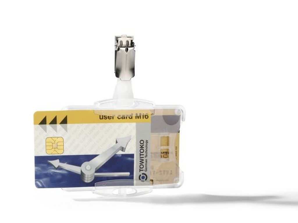 Med denna DURABLE dubbelsidiga passerkortshållare håller du ID-kort och passerkort säkert på plats. Denna DURABLE dubbelsidiga passerkortshållare passar utmärkt för två ID-kort eller passerkort. Passerkortshållaren kan användas i liggande eller stående format utan att skada magnetremsan. Passerkortshållaren har en vridbar metallklämma men kan även användas med andra korttillbehör som kedjor, textilhalsband eller jojo. - Dubbelsidig passerkortshållare med vridbar metallklämma - Har plats för två kort utan att skada magnetremsan - Kan användas i både liggande och stående format - Kan kombineras med kedja, textilhalsband eller jojo - Insticksetikett: 54 x 85 mm - Färg: svart