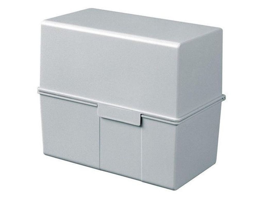 Låda för indexkort i storlek A7L med plats för upp till 300 kort. I den här lådan kan du förvara alla dina indexkort. Lådan har ett stadigt lock med snäppstängning och gångjärnet är slittåligt med metall inuti. Locket kan vikas hela vägen bakåt och användas som ett extra fack. Indexkort kan t.ex. användas för inlärning av språk, studier, samlingar, arkivering eller system för referensinfo. Enkelt att ta med och snygg förvaring. Rekommenderas för skolor, kontor och i hemmet. - Stadigt lock - Format: A7L - Material: Polystyren plast - Kapacitet: 220 kort (190g papper) upp till 300 kort (100g papper) - Färg: Ljusgrå - Mått BxHxD: 121 x 101 x 74mm - Tillverkad i Tyskland - Levereras utan kort