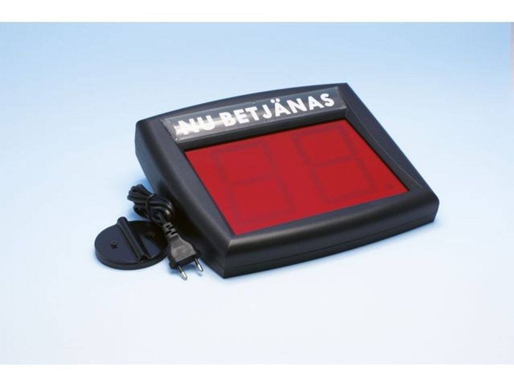 Trådlöst kösystem med många möjligheter. Kombinera själv ihop ditt paket med valfritt antal fjärrkontroll(er) och tablå(er). Väggfäste medföljer tablån och ansluts lätt till 220v uttag. Fjärrkontrollen visar tydligt vilket nummer som visas på tablån, 9V batteri medföljer. Fjärrkontroll ingår ej utan beställs separat. - Mått: : 29x26cm