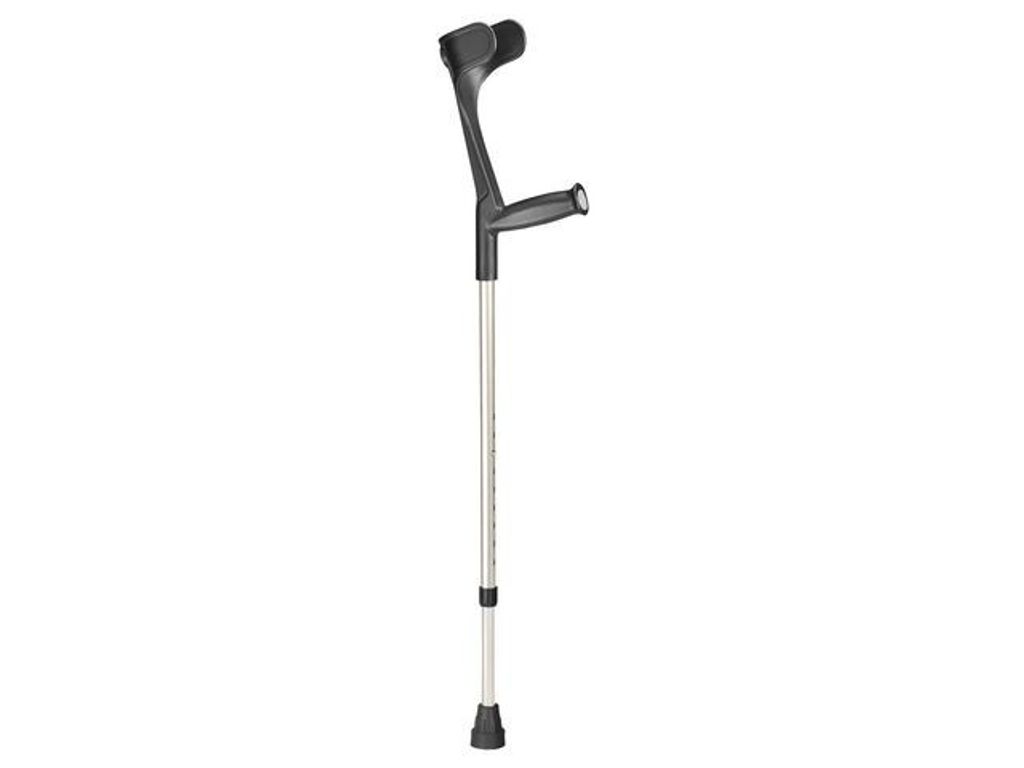 Armbågskrycka med justerbar höjd mellan 76-96 cm. Kryckor är en hjälp för personer med nedsatt gångförmåga av olika anledningar och bör ej användas till annat ändamål. Kryckorna går lika bra att använda inne som ute. Hög maxbelastning och med en enkel justering av höjd. Mycket hög kvalité på ingående material och reflex både bak och fram för ökad säkerhet. Mellan rören sitter en låsring som säkerställer en klickfri gång. Doppskon är tillverkad i naturgummi för ett bättre och mer bekvämt grepp. Materialet i underarmsstödet består av 15 % glasfiber som gör plastdelen mer flexibel vid temperaturväxlingar samt minskar obehagligt tryck om individen har bredare underarmar eller tjockare kläder som t.ex. vinterjacka.