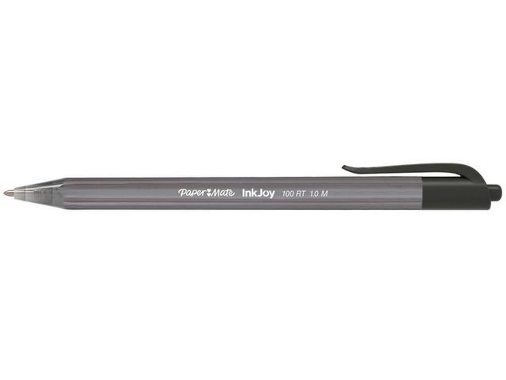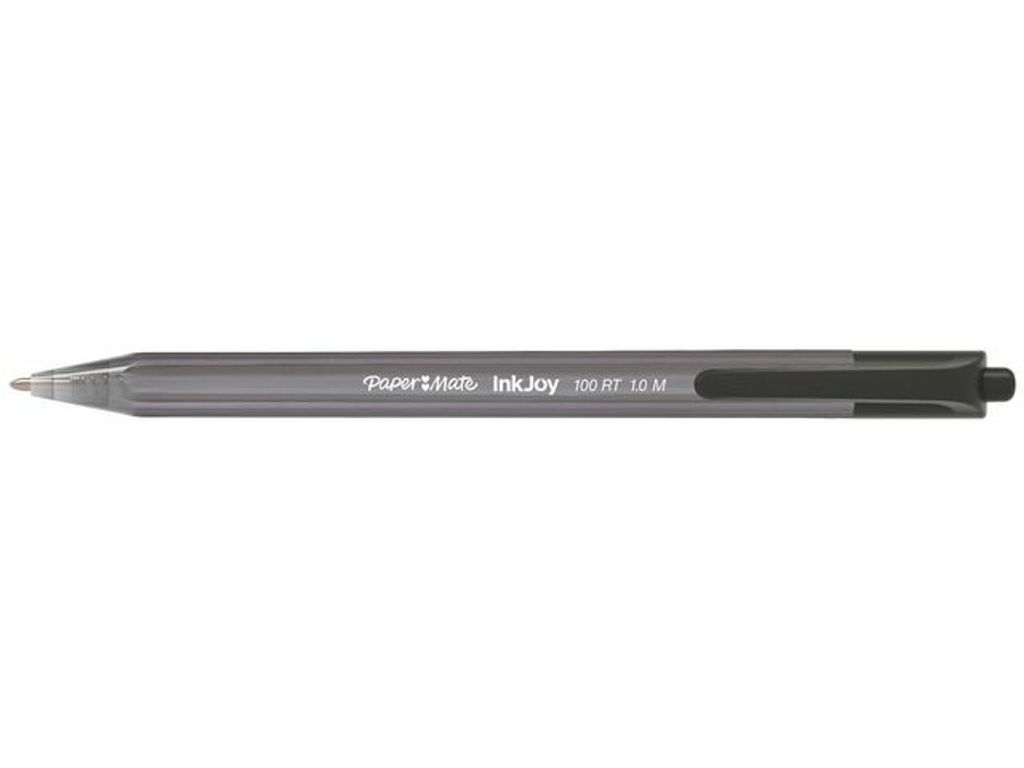 Den triangulära designen på denna Paper Mate® InkJoy™ 100-kulspetspenna ger en bekväm och kontrollerad skrivupplevelse. Den här kulspetspennan har en design som framhäver både form och funktion. Medan den genomskinliga pennkroppen och vita påfyllning ger pennan ett slimmat, modernt och snyggt utseende ger dess triangulära form dig en bekväm och kontrollerad skrivupplevelse. Spetsen på 1,0 mm tillsammans med det revolutionerande InkJoy™-skrivsystemet ger mjuka linjer för skarp och tydlig skrift. Dessutom kan du förvara Paper Mate®-pennan nära till hands tack vare den praktiska fickklämman som du kan fästa på fickor, mappar, anteckningsböcker och mycket mer. - Klickmekanism - Spetsbredd: 1,0 mm - Skrivfärg: Svart - Färg pennkropp: Svart