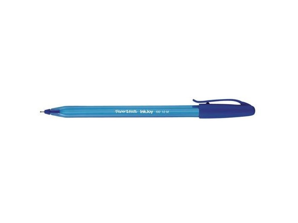 Paper Mate® InkJoy™ 100-kulspetspennans triangulära design gör den bekväm och kontrollerad att skriva med. Denna korkförsedda kulspetspenna har en design som framhäver både form och funktion. Medan den transparenta pennkroppen och den vita påfyllningen ger pennan ett slimmat, modernt och fräscht utseende ger dess triangulära form dig komfort och kontroll när du skriver. Den stora spetsen på 1,0 mm tillsammans med det revolutionerande InkJoy™-skrivsystemet ger mjuka linjer för klar och tydlig skrift. Du kan också ha denna Paper Mate®-penna nära till hands genom att fästa den praktiska fickklämman på mappar, anteckningsböcker, fickor och mycket mer. - Huv - Spetsbredd: 1,0 mm - Färg: Blå - Färg pennkropp: Blå