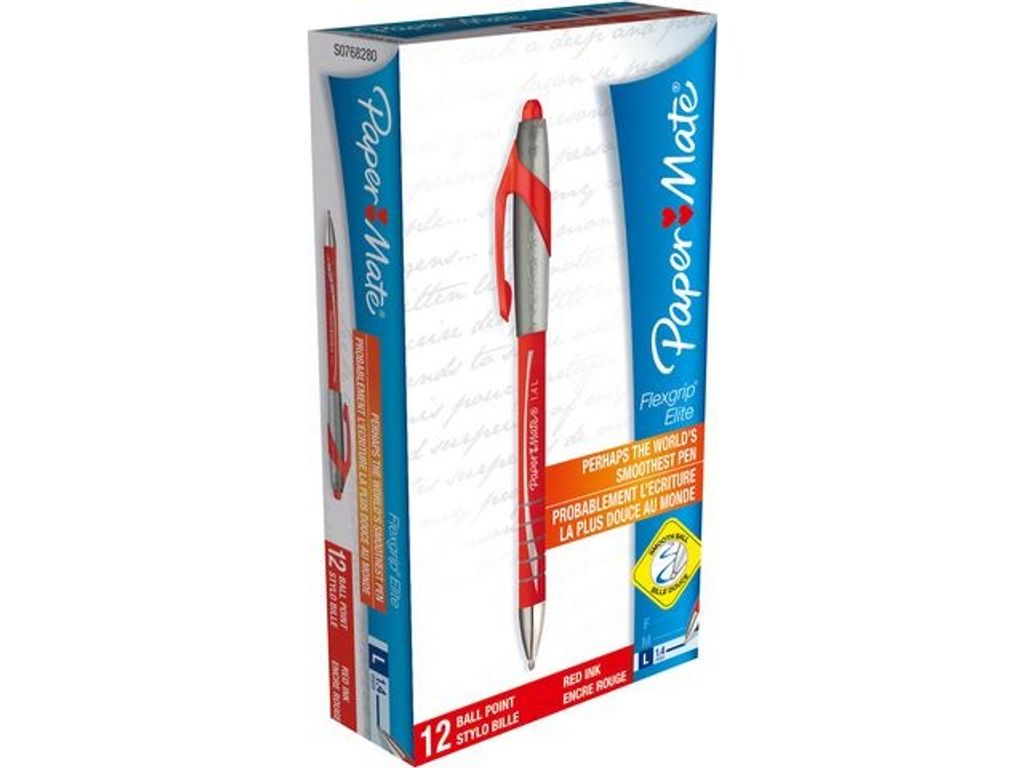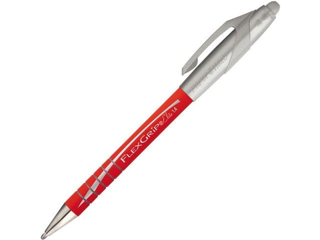 Paper Mate® Flexgrip® Elite-kulspetspennan är utformad för komfort – den har gummikropp med ett särskilt ergonomiskt skårat grepp. Den här kulspetspennan med klickmekanism från Paper Mate® har en extra stor spets på 1,4mm för att kunna bidra till en jämn och enkel skrivupplevelse. Pennkroppen i gummi med skårat grepp har ett ergonomiskt och bekvämt grepp, så du kan skriva i längre stunder utan att behöva ta en paus. Dessutom har den här pennan även en fickklämma som kan fästas i fickor, anteckningsböcker, pärmar och mer. - Klickmekanism - Spetsbredd: 1,4 mm - Skrivfärg: Röd - Färg pennkropp: Röd