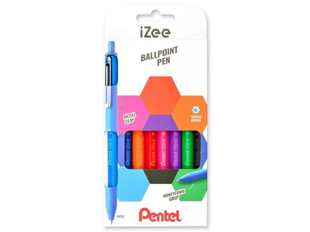 Kulpenna PENTEL iZee sorterade färger med 8 stycken per förpackning. En modern penna, färgrik och lätt att skriva med. Bläcket har låg viskositet vilket ger en extra mjuk skrivkänsla. Pennkroppen är matt och greppvänlig. - Klickmekanism - Spetsbredd: 1 mm - Bläckfärg: Flera - Färg pennkropp: Flera -