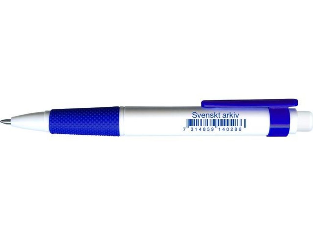 Kulpenna med lite tjockare pennkropp, bläcket är certifierat med Svenskt Arkiv SA-4000 XL är en kulpenna med bläck som är certifierad Svenskt Arkiv. Pennan har en tjockare pennkropp och en behagligt gummerad greppdel. Pennan levereras med bläckpatron från Ballograf med en skrivlängd på cirka 4000 meter. Kula av wolframkarbid och spets i rostfritt stål som ger en skön skrivkänsla. 30st per förpackning. - Klickmekanism - Linjebredd: Medel - Textfärg: Blå - Färg pennkropp: Vit/blå - Godkänd för Svenskt Arkiv enl ISO 11798 - Kan inte fyllas med refill