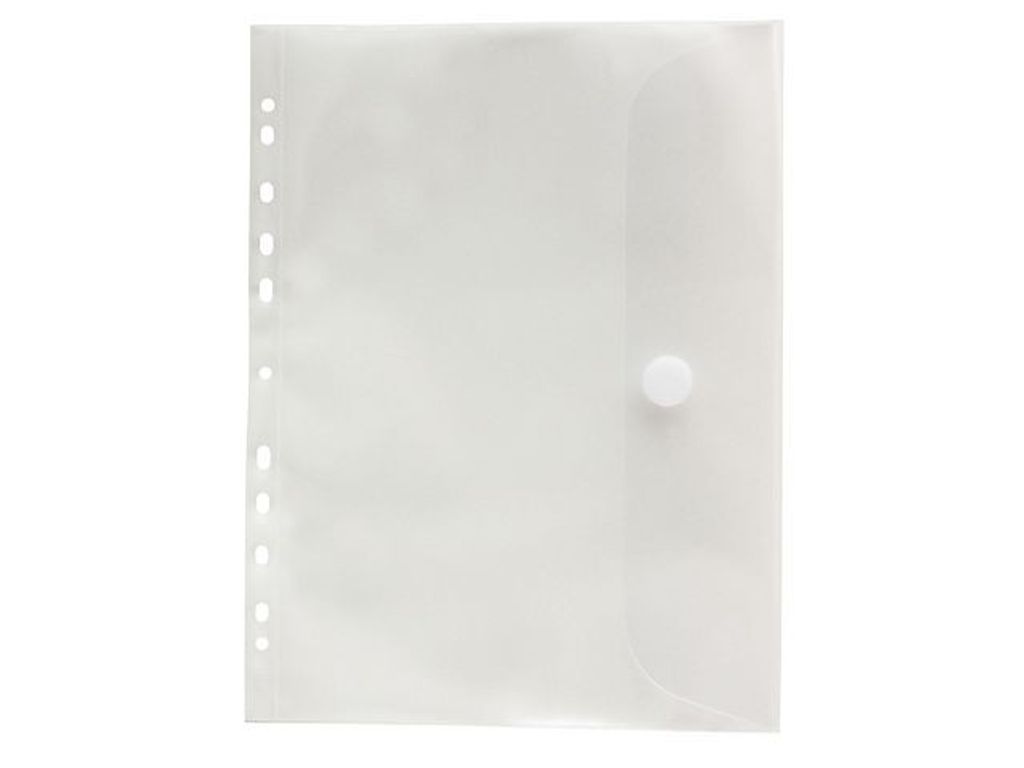 Skydda flera dokument samtidigt med den här praktiska kuvertfickan i polypropylen, som har ett kardborreband. Håll stora dokument och flersidiga broschyrer tydliga och rena med den här slitstarka kuvertfickan i polypropylen. Papperen hålls säkra inuti fickan tack vare en flik som stängs med ett kardborreband. Den här förstansade kuvertfickan i polypropylen är kompatibel med en rad olika ringpärmar och gaffelpärmar i A4-format. - Flik med kardborrefäste på höger sida - Elva förstärkta stansade hål - Kompatibel med en mängd olika pärmar - Tillverkad av tålig polypropylen - Kuvertficka i plast rymmer A4-dokument - Färg: Transparent