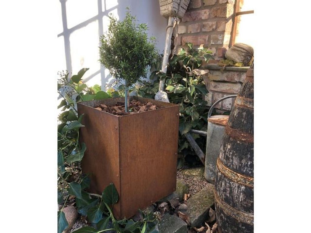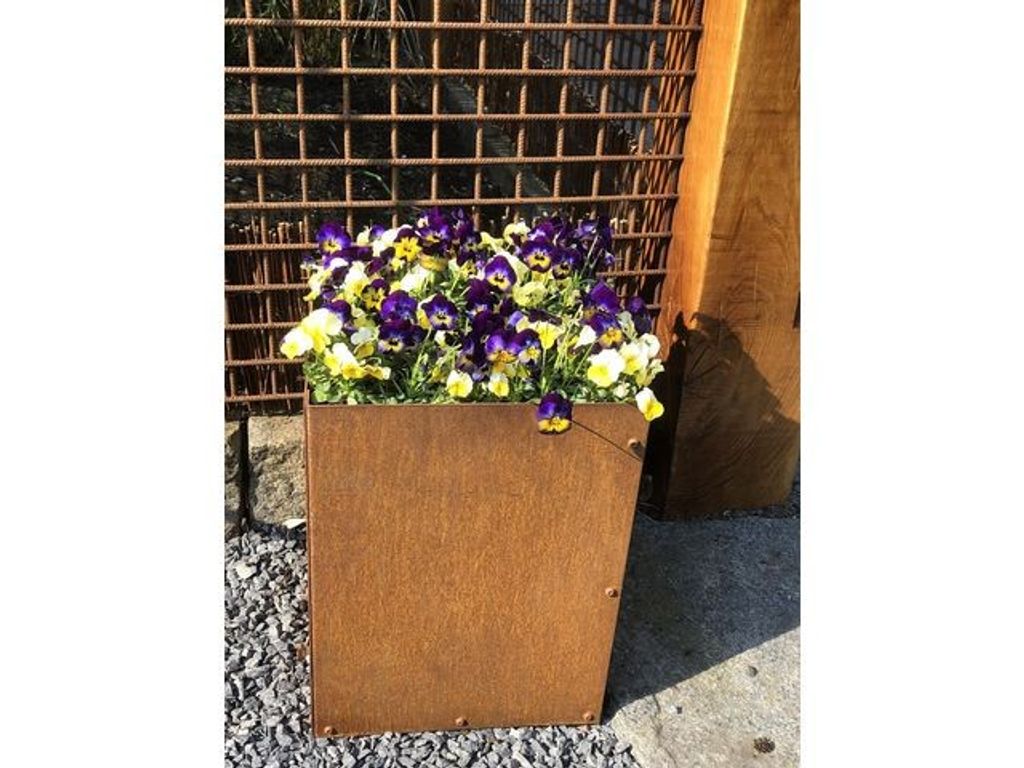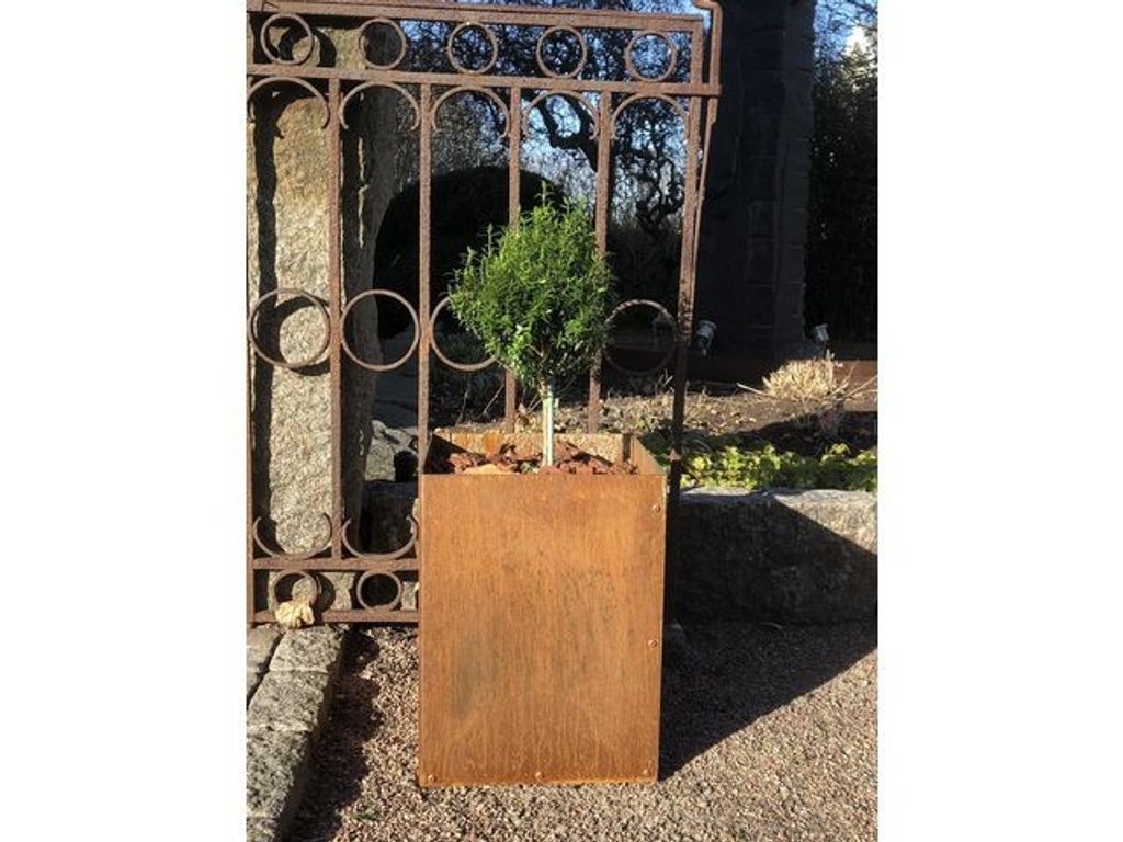 Beskrivning av L-kruka med botten corten 30x30x40cm