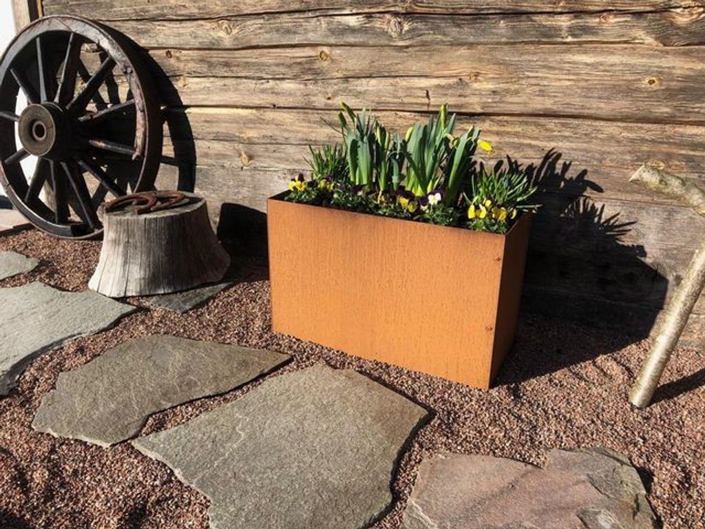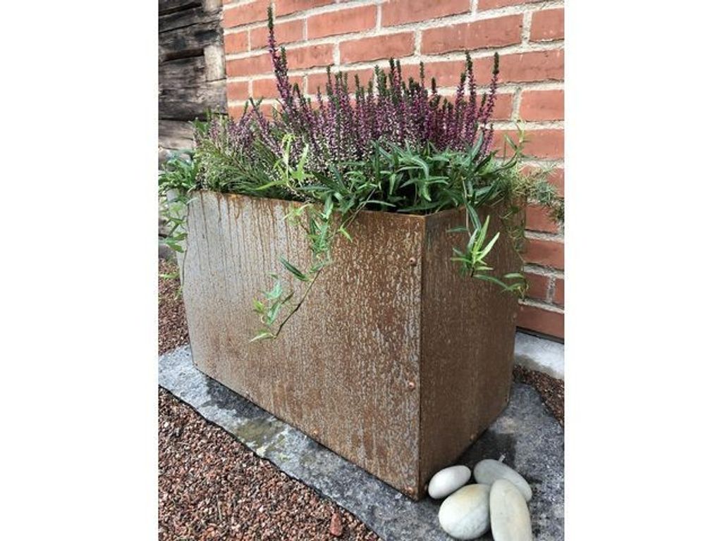 Beskrivning av L-kruka med botten corten 30x60x40cm