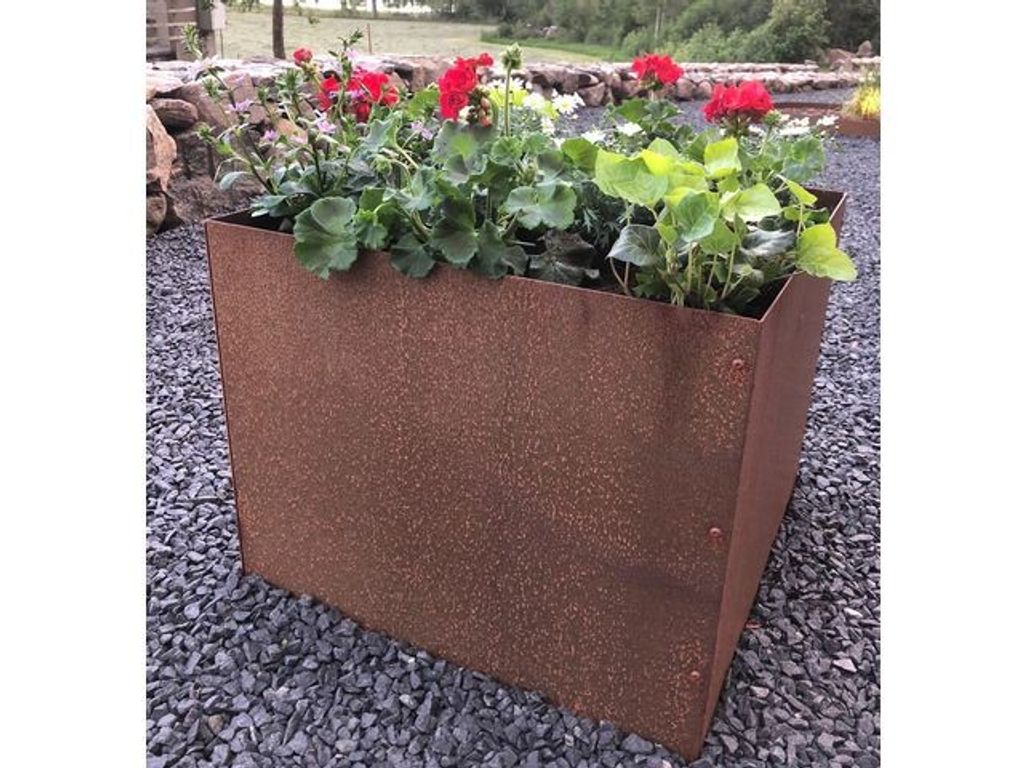 Beskrivning av L-kruka med botten corten 45x75x55cm