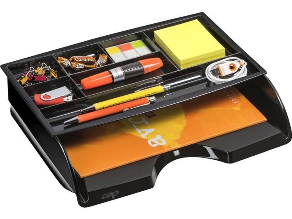 CepPro GreenSpirit-sortimentet är ett miljömedvetet val då det tillverkas av 90 % återvunnet material och dessutom är 100 % återvinningsbart. CEP CepPro GreenSpirit 149-4 organiseraren har en elegant, modern design som både är funktionell och sätter stil på alla kontorsmiljöer. Organiseraren är tillverkad av stöttålig polystyren och är en snygg och praktisk lösning för förvaring och organisation. Den har 7 fack med tillräckligt med utrymme för att rymma pennor, överstrykningspennor, notislappar och extra tillbehör, t.ex. gem, radergummin eller häftstift. Denna brevkorg passar fint med alla skrivbordstillbehör från CEP:s eleganta CepPro GreenSpirit-sortiment för ett snyggt och enhetligt utseende. - Ingår i CEP:s eleganta, moderna CepPro GreenSpirit-sortiment - Tillverkad av 100 % återvinningsbar och stöttålig polystyren - Tillverkad av 90 % återvunnet material - Försett med 7 fack - Kompatibel med CepPro brevkorg 135/2 - Färg: Svart - Mått: 344 x 168 x 20 mm