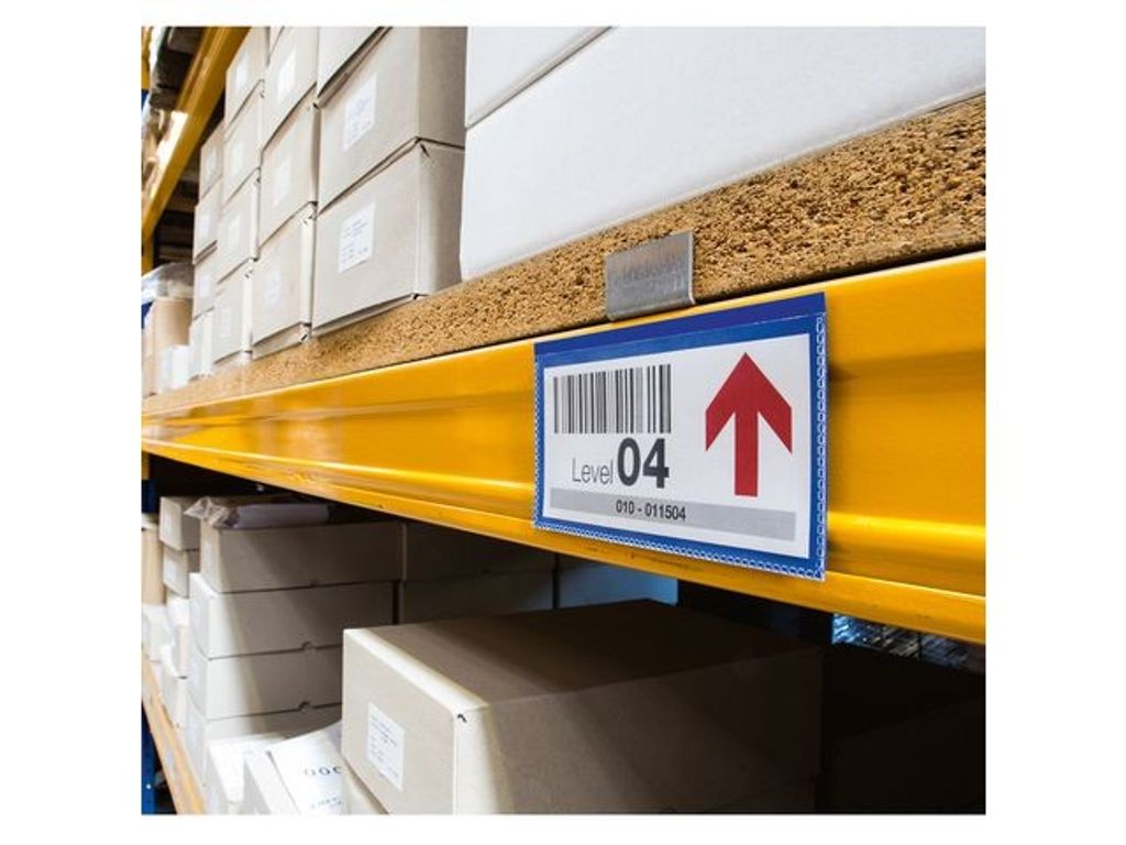 Tydlig och översiktlig märkning av hyllor, skåp, dörrar, containrar och andra utrymmen som förbättrar och effektiviserar arbetsprocessen på lager och i produktionsanläggningar. De magnetiska etiketthållarna av slitstark polypropylene går att läsa med skanner och skyddar de utbytbara etiketterna från smuts. Två magnetremsor på baksidan gör att fickan sitter stadigt på plats. Gratis mall för etiketten finns på www.duraprint.se. - Innermått: 150x67 mm (B x H) - Yttermått: 163x83 mm (B x H)