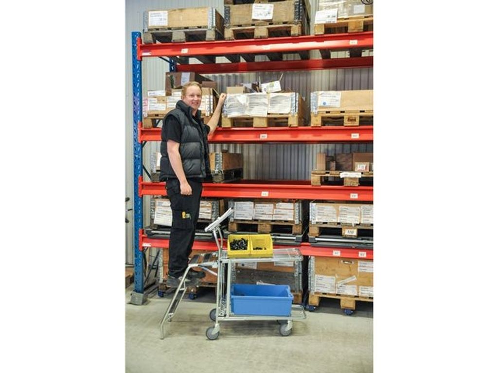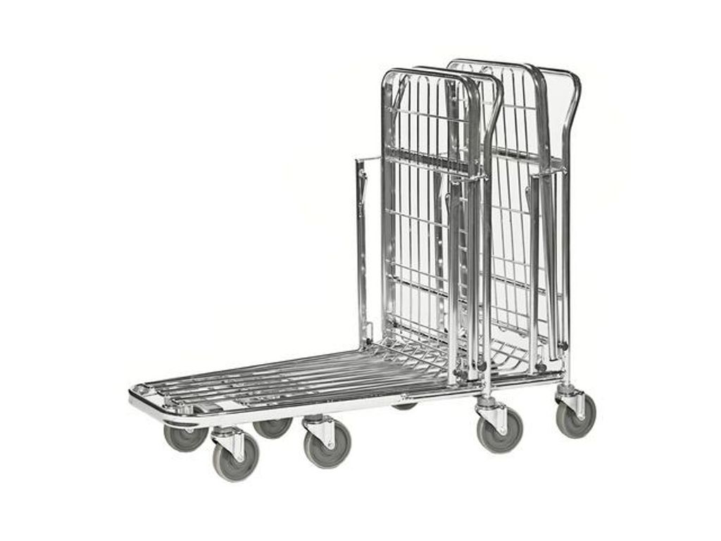 Praktiskt och lättmanövrerad vagn för butik eller lager. Stackningsbar butik- eller lagervagn där övre hyllplanet enkelt kan fällas upp. Elförzinkad. - Belastning: 300kg (övre hyllplan 100 kg) - Storlek: 860 x 530 x 1010mm (LxBxH) - Hjultyp: 4 länkhjul - Bromsade hjul: Nej - Vagnens vikt: 20,5kg