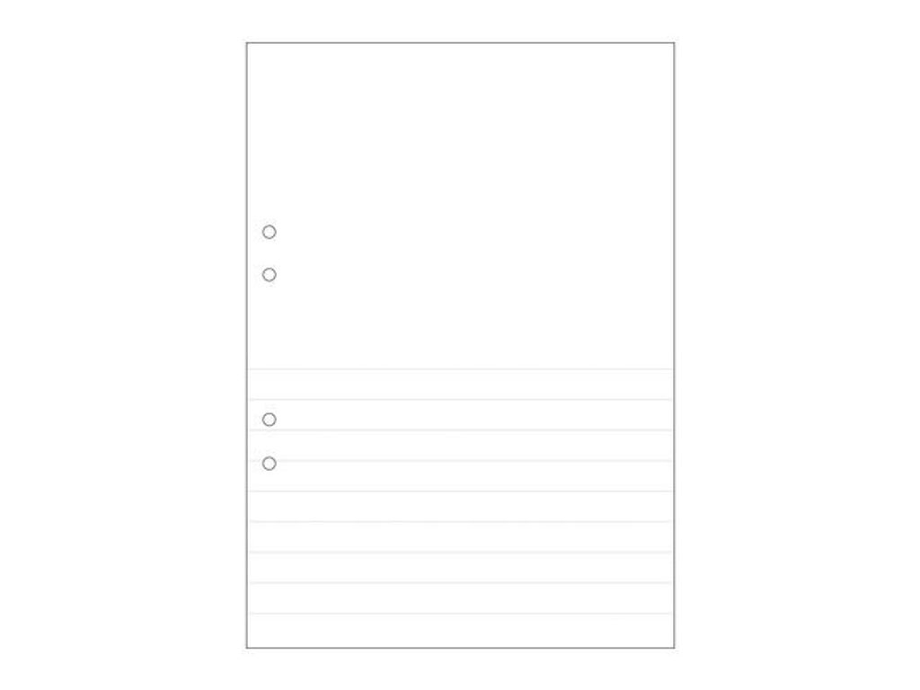 Kvalitativt hålat papper med ena halvan blank och andra linjerad. Ett A4 papper där nedre halvan är linjerat med 14,5 mm mellan linjerna och den övre halvan är tom. Baksidan på varje papper är helt linjerat, vilket ger mer utrymme att skriva på. Papperet kan användas för att skriva anteckningar eller rita diagram och grafer. - Linjebredd: 14,5 mm, på nedre halvan - Tomt på den övre halvan - Helt linjerat på baksidan av varje papper - FSC®-certifierat - Format: A4 - Färg: Vit - Vikt: 100 g/m² - Antal: 500