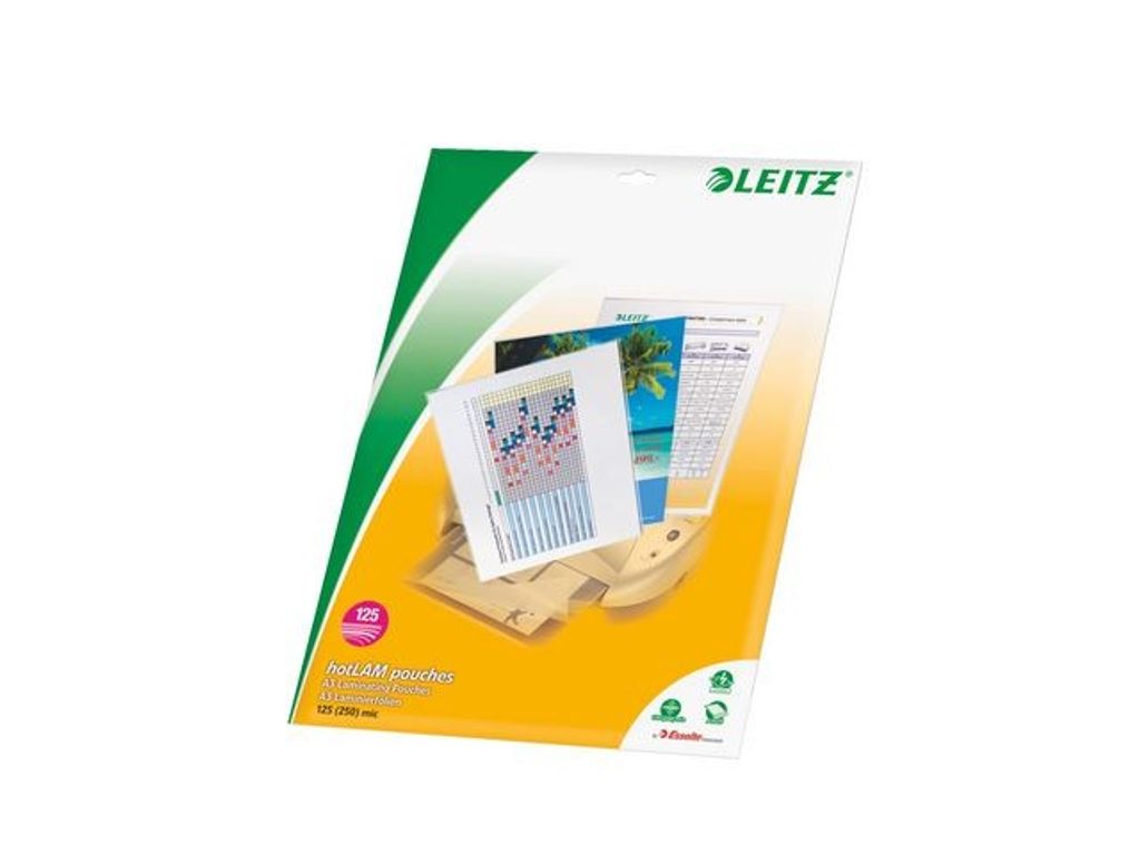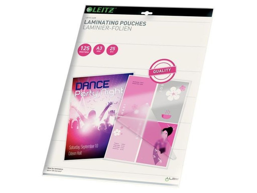 Beskrivning av Laminat LEITZ A3 125mic klar 25/fp