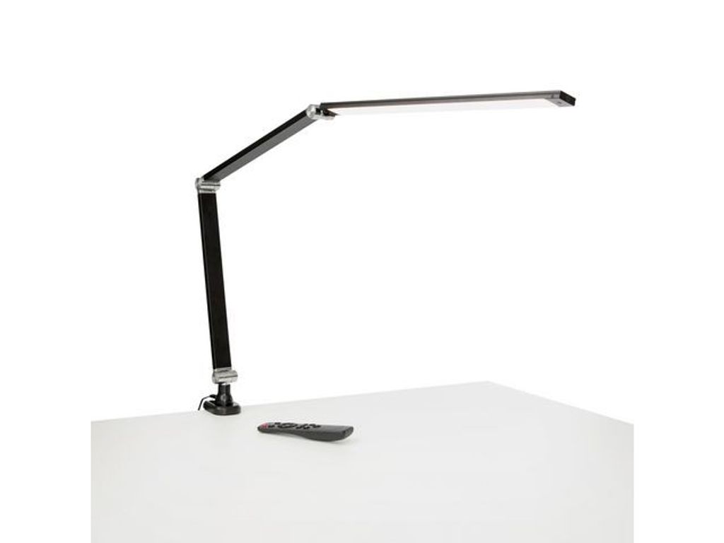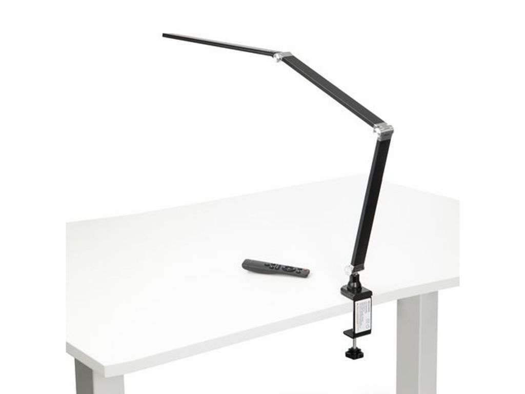 Link Led arbetsplatslampa är snygg och har en högkvalitativ finish. En lång metallstam med förstärkta aluminiumskarvar ger lampan dimension och hållbarhet. Lampan har en integrerad LED-ljuskälla som kan justeras till tre olika färgtemperaturer och fem olika effektnivåer. Tack vare det vändbara ljushuvudet är det enkelt att rikta ljuset till precis rätt plats på din arbetsplats. Arbetsplatslampan Link Led kan fästas i bordskanten. - Färg: Svart - Bordsmontering, 6 - 70 mm - Material: plast, metall och aluminium - Flimmerfri, bländskyddad - Ljuseffekt 1500 lux (från en höjd av 40 cm) - Ljuseffektjustering, 20% - 60% - 100% - Färgtemperaturkontroll, kall, varm och blanda - CRI-värde över 90 - Vändbart ljushuvud - Armlängder: 340 mm - 340 mm - 450 mm + bas 50 mm - Taktil strömbrytare och fjärrkontroll