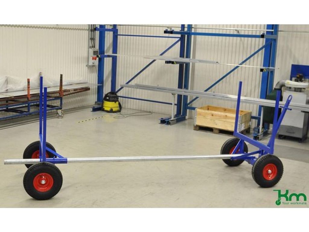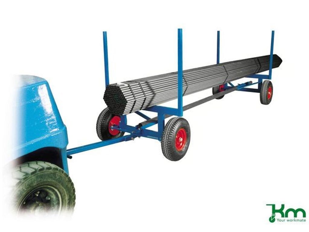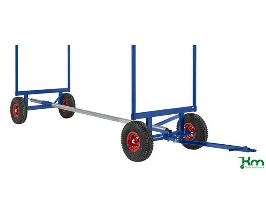 Långgodsvagn som är anpassad för långt och tungt gods. Med flera justeringsmöjligheter vilket gör den smidig i alla miljöer. Dragstång med truckögla. Levereras med 4 lösa hörnstolpar /1000 mm. Levereras omonterad. - Belastning (statisk): 3500kg - Storlek: 4000x1270x640mm (LxBxH) - Maxlängd mellan axlar: 4000mm - Inställbara längder: 2500mm, 3500mm och 4000mm - Höjd till lastplan: 640mm - Mått mellan hörnstolpar: 1160mm - Dragstångslängd: 1270mm - Färg: Blå - Vagnens vikt: 155kg - Bromsade hjul: Nej - Hjultyp: 4st fasta